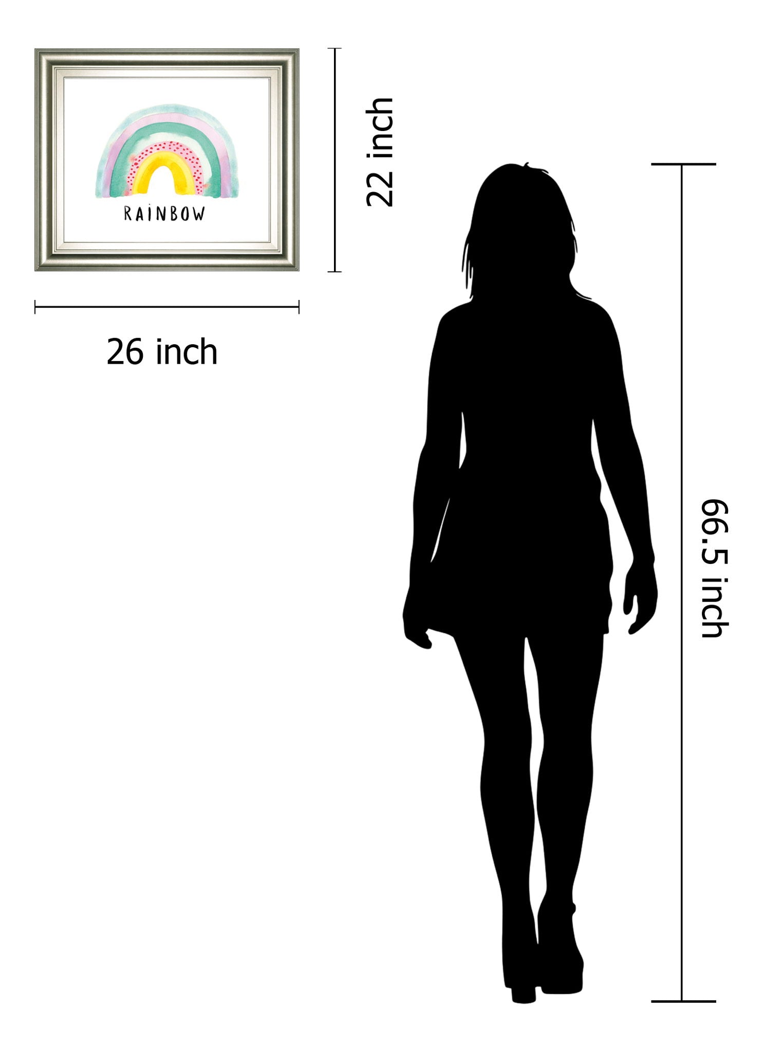 “Rainbow Joy” brings a gentle burst of happiness to any child's space with its soft pastel rainbow rendered in playful, whimsical strokes. The delicate blend of pastel green, purple, yellow, and red hues creates a soothing yet joyful atmosphere, perfect for nurseries and playrooms. Encased in a sleek silver frame and protected by crystal-clear glass, this contemporary drawing is crafted to last while adding a charming touch of color and imagination to your home. Ready to hang and designed to inspire smiles, it’s a delightful way to brighten any room with warmth and creativity.