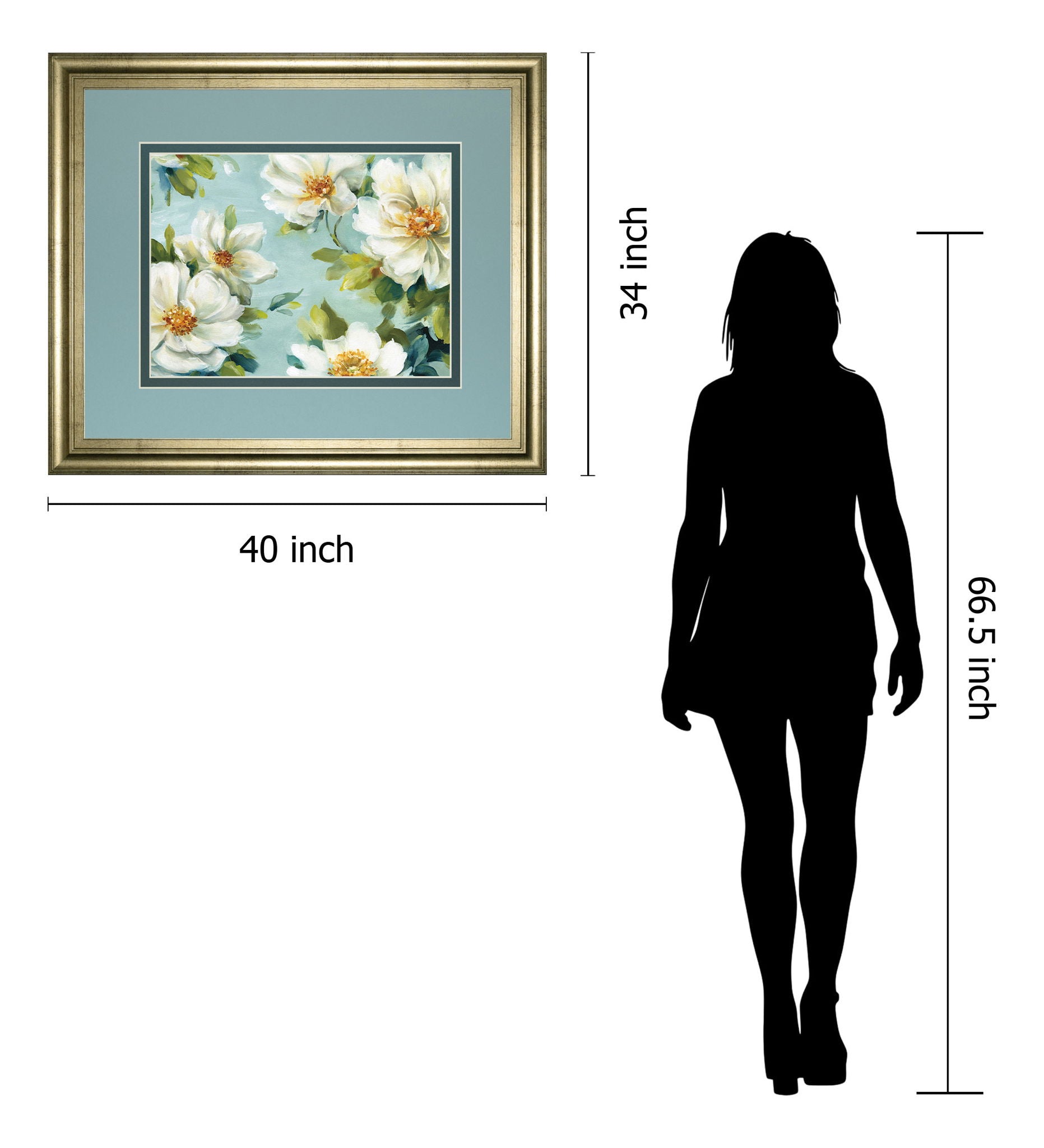 Blooming Serenity invites you into a tranquil garden scene where delicate white flowers unfurl against a soothing blue-green background. This piece blends natural elegance with a touch of sophistication, framed in a radiant gilded finish that highlights the artwork’s depth and detail. Perfectly suited for living rooms or bedrooms, it brings a calming botanical charm that refreshes any space with timeless beauty and refined artistry.