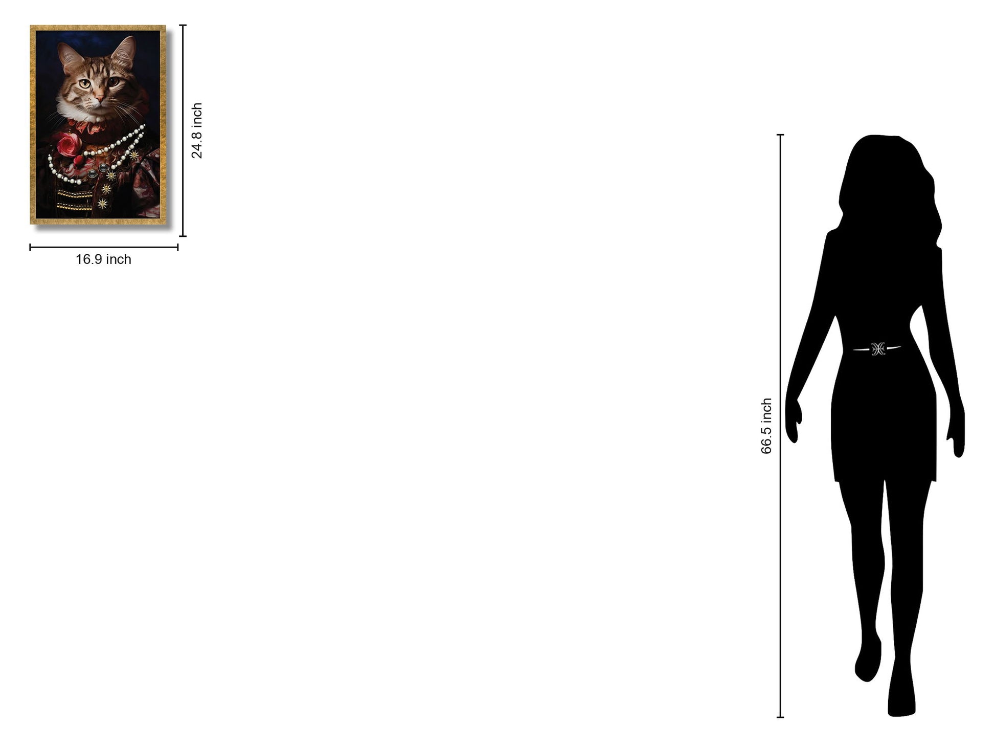 Discover the regal charm of "Opulent Aristocat in Rose Finery," a stunning graphic art piece printed on high-quality gloss canvas. This contemporary artwork features a majestic cat adorned in exquisite rose finery, complete with hand-applied studs that add texture and depth. The glossy finish enhances the vibrant colors and intricate details, making it a captivating focal point for any living room, office, or den. Framed in a luxurious gold polystyrene frame, this piece arrives ready to display with professional mounting hardware, blending sophistication with ease of installation. Elevate your space with this unique blend of artful craftsmanship and whimsical elegance.
