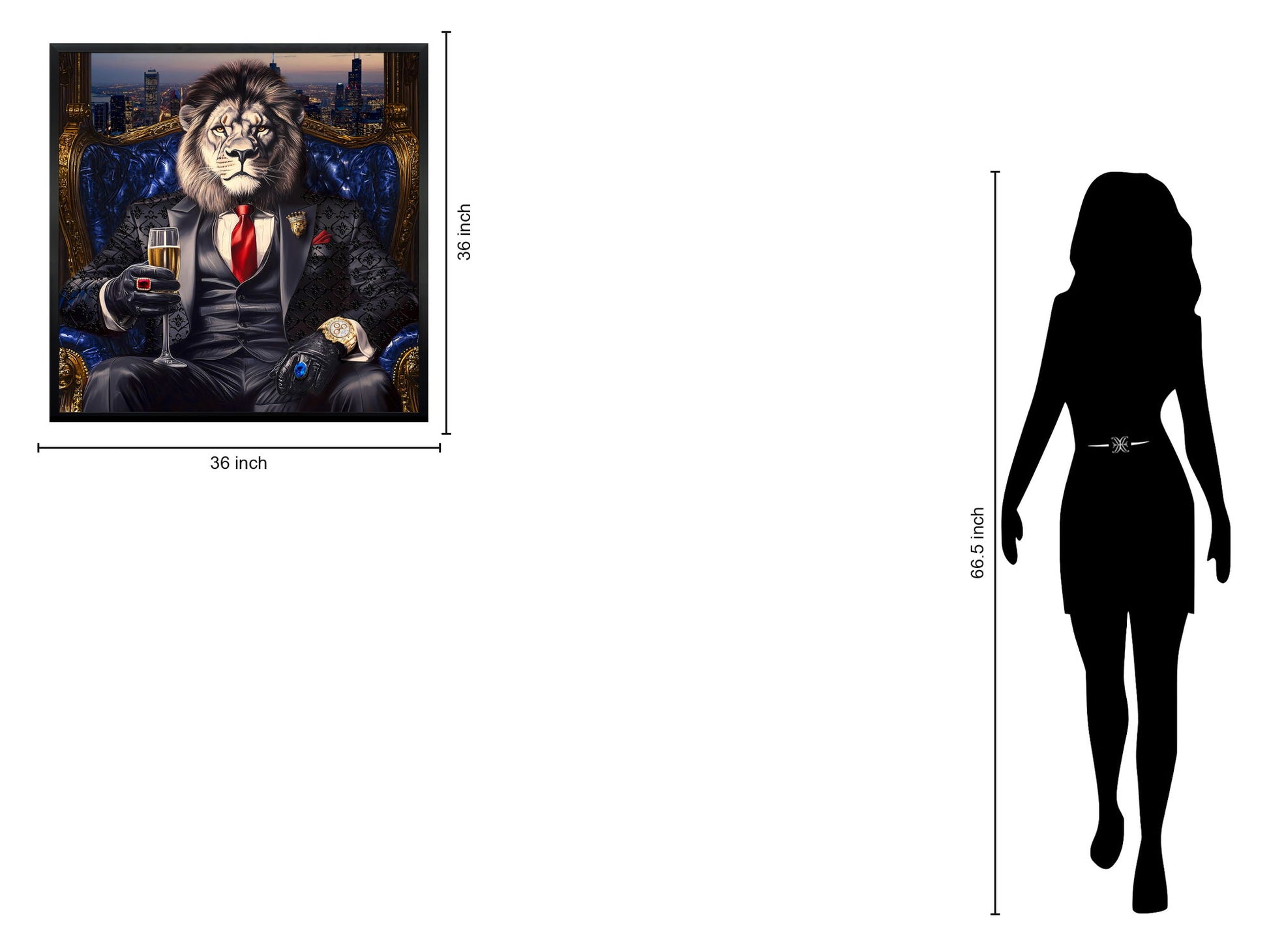 “Strictly Business” captures a strikingly unique vision where the majestic lion dons a tailored suit, exuding power and sophistication. This hand-painted canvas is enhanced with hand-applied accents that bring texture and depth, making each detail—from the lion’s intense gaze to the luxurious blue and gold throne—come alive. Perfectly framed in sleek black polystyrene, this mixed media piece is ready to display and adds a bold, contemporary statement to any living room, study, or office. With every purchase, you also contribute to a social cause, helping provide meals to hungry children in America.