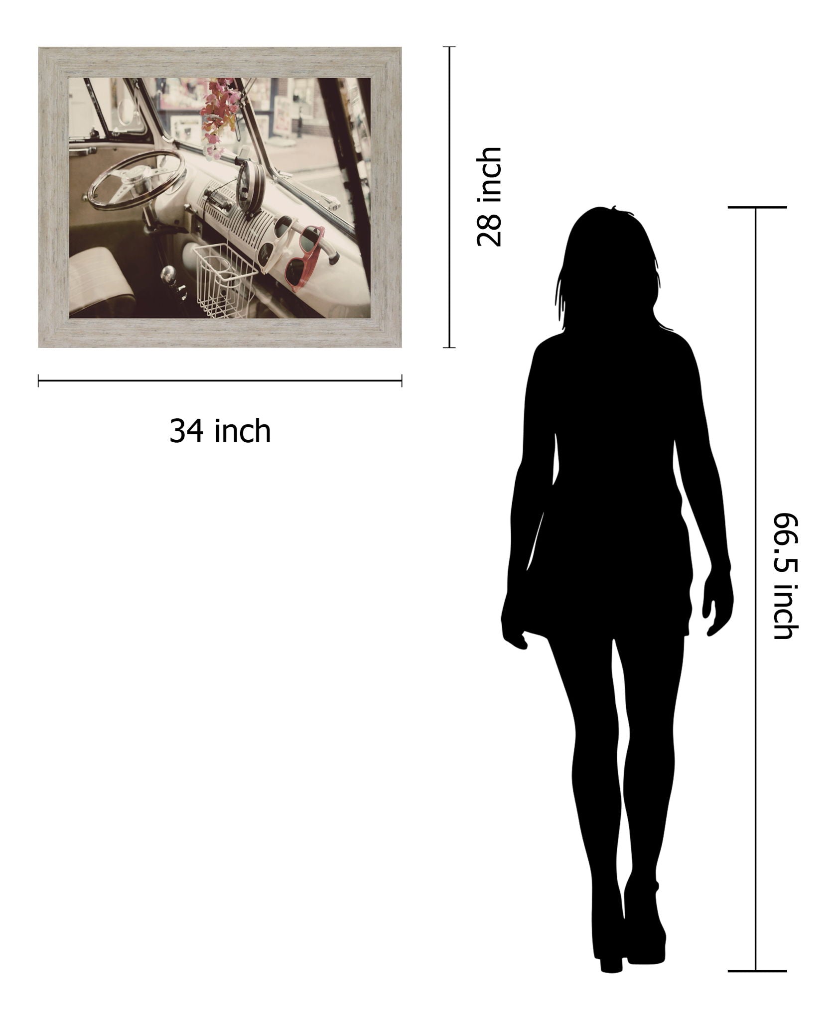 Step back in time with "Old Travelers," a captivating vintage graphic art piece that brings nostalgic charm into your space. This framed print captures the intimate interior of a classic vehicle, featuring a wooden steering wheel, retro dashboard details, and two pairs of playful sunglasses hanging on the dash, evoking memories of carefree road trips and timeless adventures. The weathered light wood frame adds a touch of rustic elegance, while premium real glass protects the artwork and enhances its warm, muted tones. Perfect for living rooms, offices, or studies, this ready-to-hang piece blends vintage style with modern craftsmanship, making it a cherished focal point that invites stories of travel and discovery into your home.