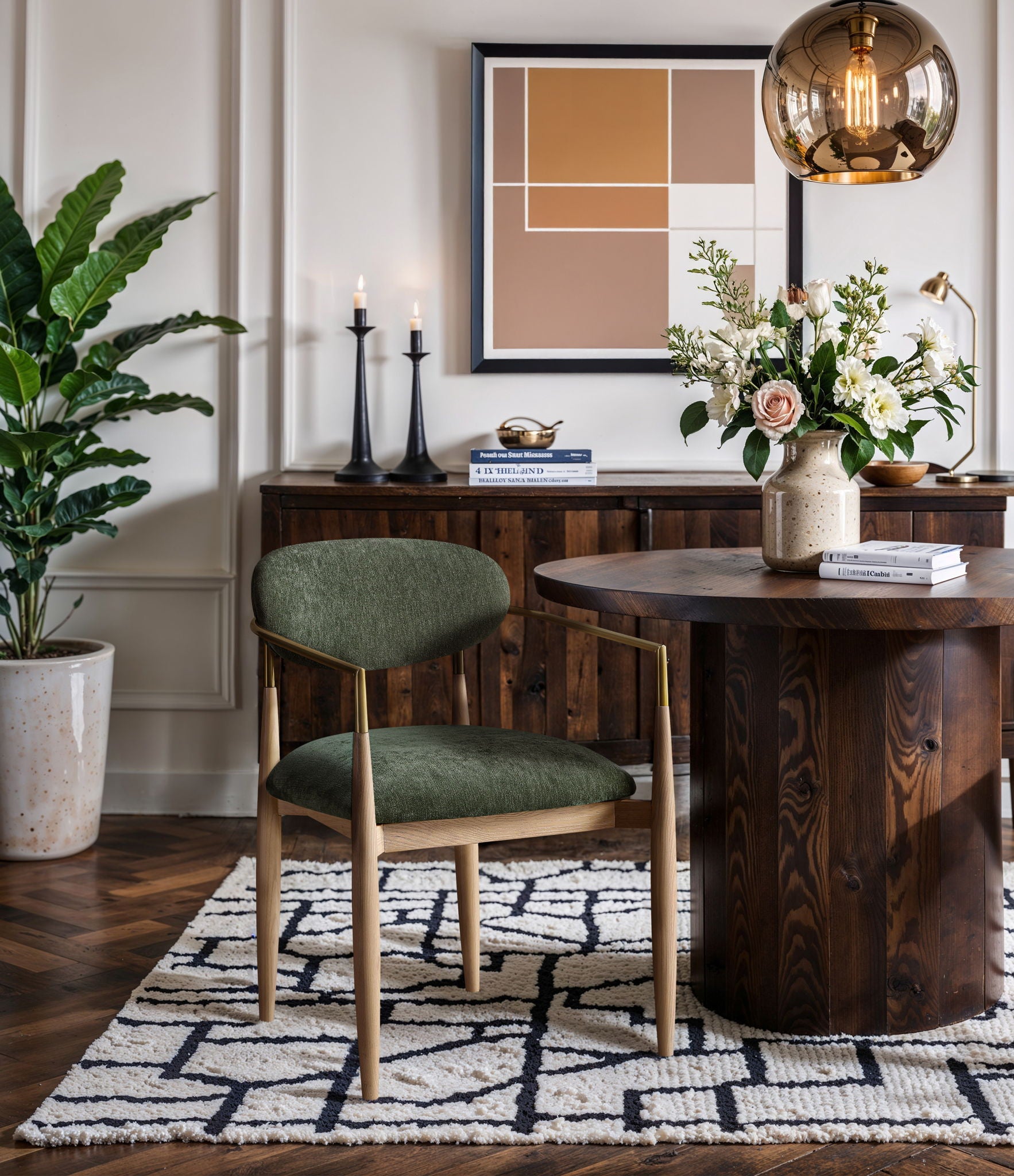 Riccio - Performance Fabric Upholstered Dining Arm Chair (Set of 2) With Light Brown Legs - Olive