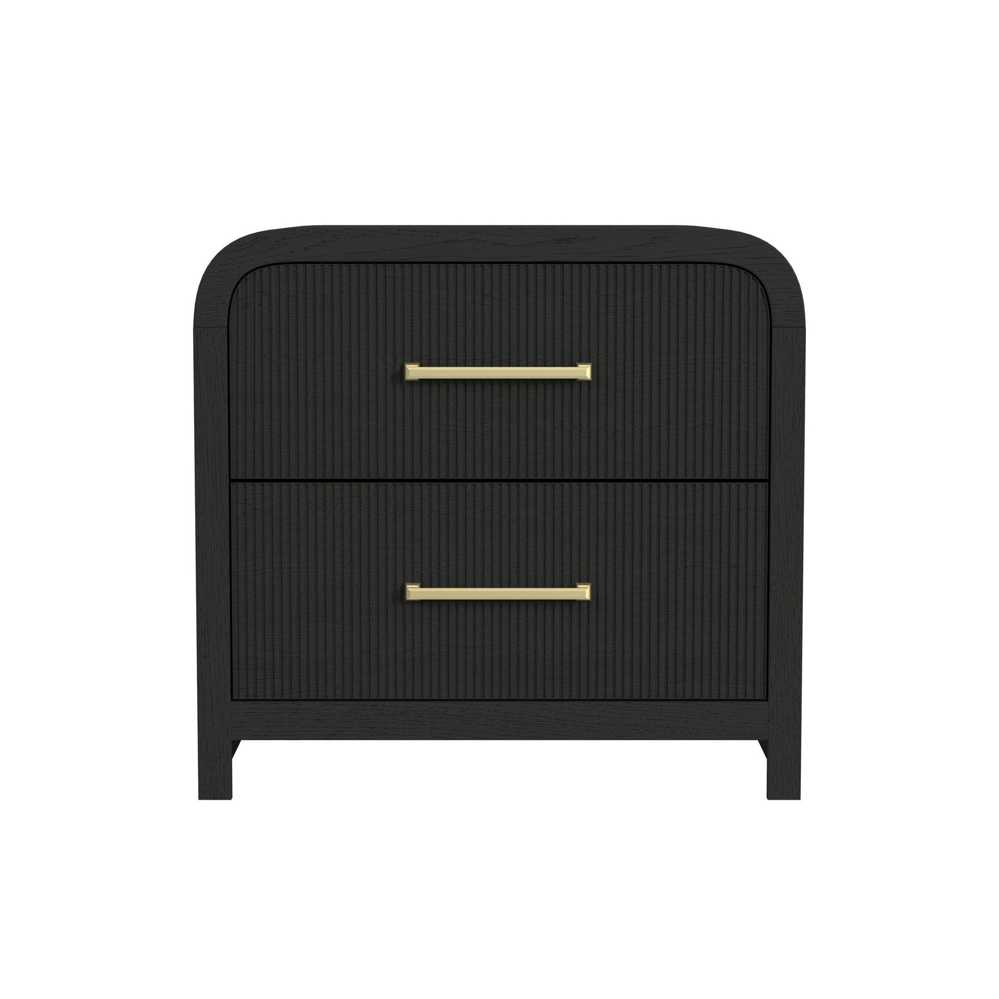 Enhance your bedside with the stylish Ridgemont 2-Drawer Nightstand with USB. Finished in a versatile finish with wood grain detailing, this piece effortlessly adds elegance to your space. Sleek, rounded corners and drawer fronts with decorative fluting create a modern, refined aesthetic, and the spacious drawers are adorned with bold, metal pulls. The nightstand features a convenient USB port, perfect for easy device charging, while the felt-lined top drawer offers added protection for your essentials. With clean, minimalist lines, the Ridgemont 2-Drawer Nightstand with USB combines function and modern design, making it an ideal addition to your bedroom.