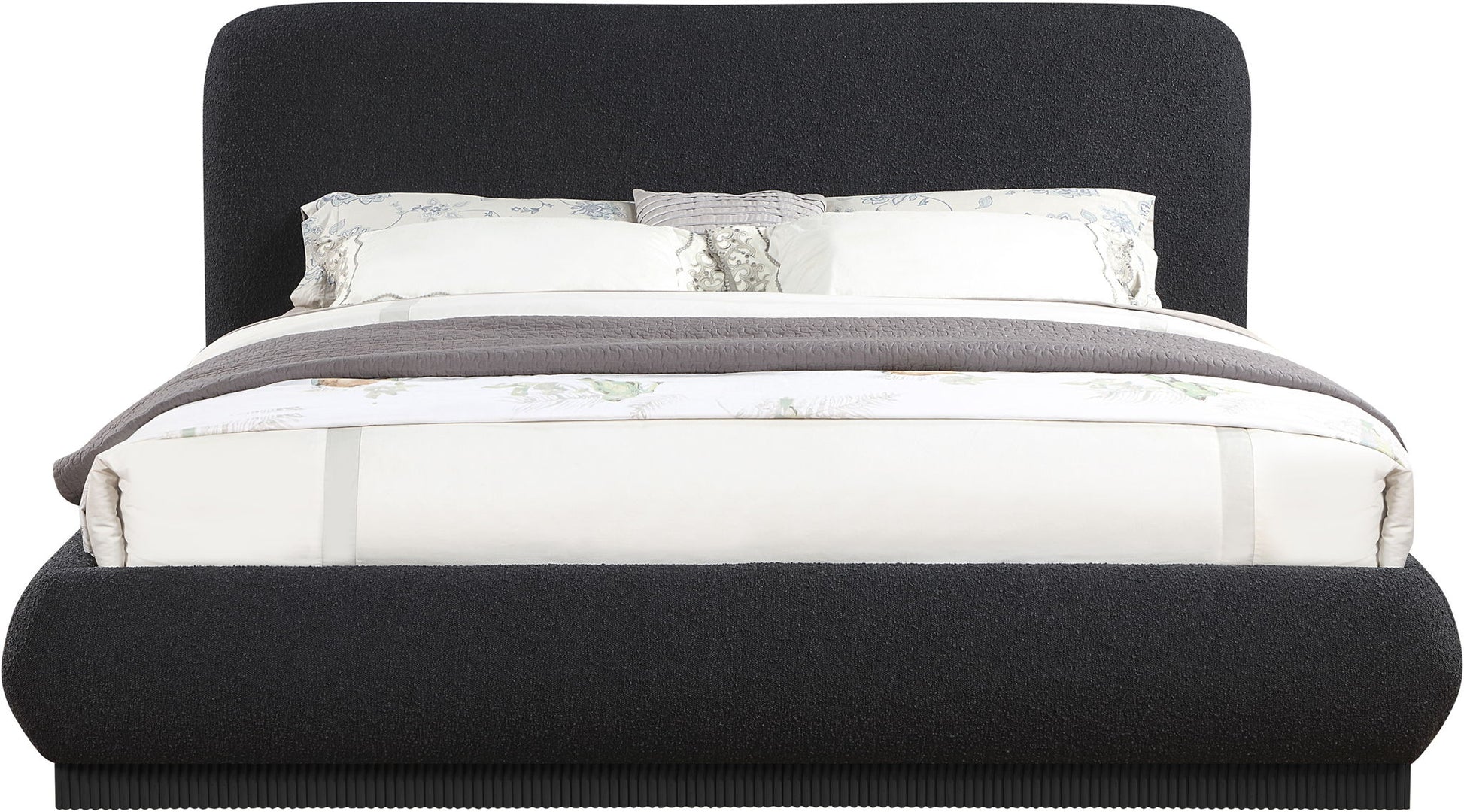 Give your bedroom (and yourself) the royal treatment with this Rigby boucle fabric king bed. Wrapped in rich boucle fabric, its black finish fluted base exudes sophistication. Fully slatted, it eliminates the need for a box spring, offering modern convenience. With an art deco design that blends elegance and functionality, this bed promises to be the centerpiece of luxurious comfort. Treat yourself to a restful retreat where style meets substance, creating a haven for relaxation and rejuvenation.