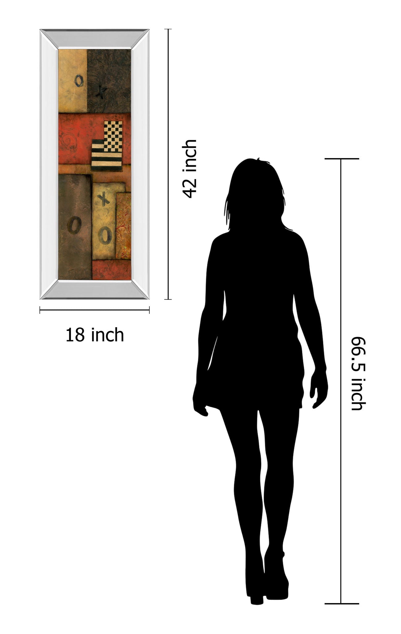 Discover a captivating blend of abstract geometry and rich earth tones with this striking framed wall art. The artwork features a textured composition of muted browns, beiges, oranges, and blacks, accented by bold X and O shapes and a checkerboard pattern that adds visual intrigue. Encased in a sleek mirrored frame, the piece reflects light to brighten any living room or office space, enhancing both modern and transitional decor styles. Crafted with a crystal-clear glass cover, it protects the vibrant colors and textures while adding depth and sophistication. Ready to hang and expertly made in the USA, this art piece effortlessly elevates your space with contemporary elegance and timeless appeal.
