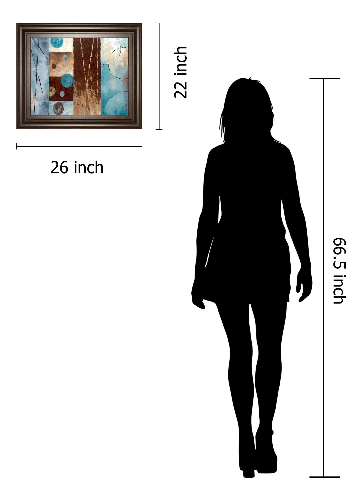 Step into a world where rich cinnamon mocha hues meet tranquil blues and earthy neutrals in a harmonious abstract composition. This framed wall art, measuring 22 by 26 inches, features a refined 3-inch MDF frame with premium real glass that enhances color vibrancy while protecting the piece. Its textured geometric shapes and layered tones create a sophisticated yet inviting atmosphere, perfect for enlivening living rooms, bedrooms, or offices. Crafted with expert care in the USA and ready to hang, this artwork effortlessly blends contemporary style with artistic depth to transform your space into a serene and stylish retreat.