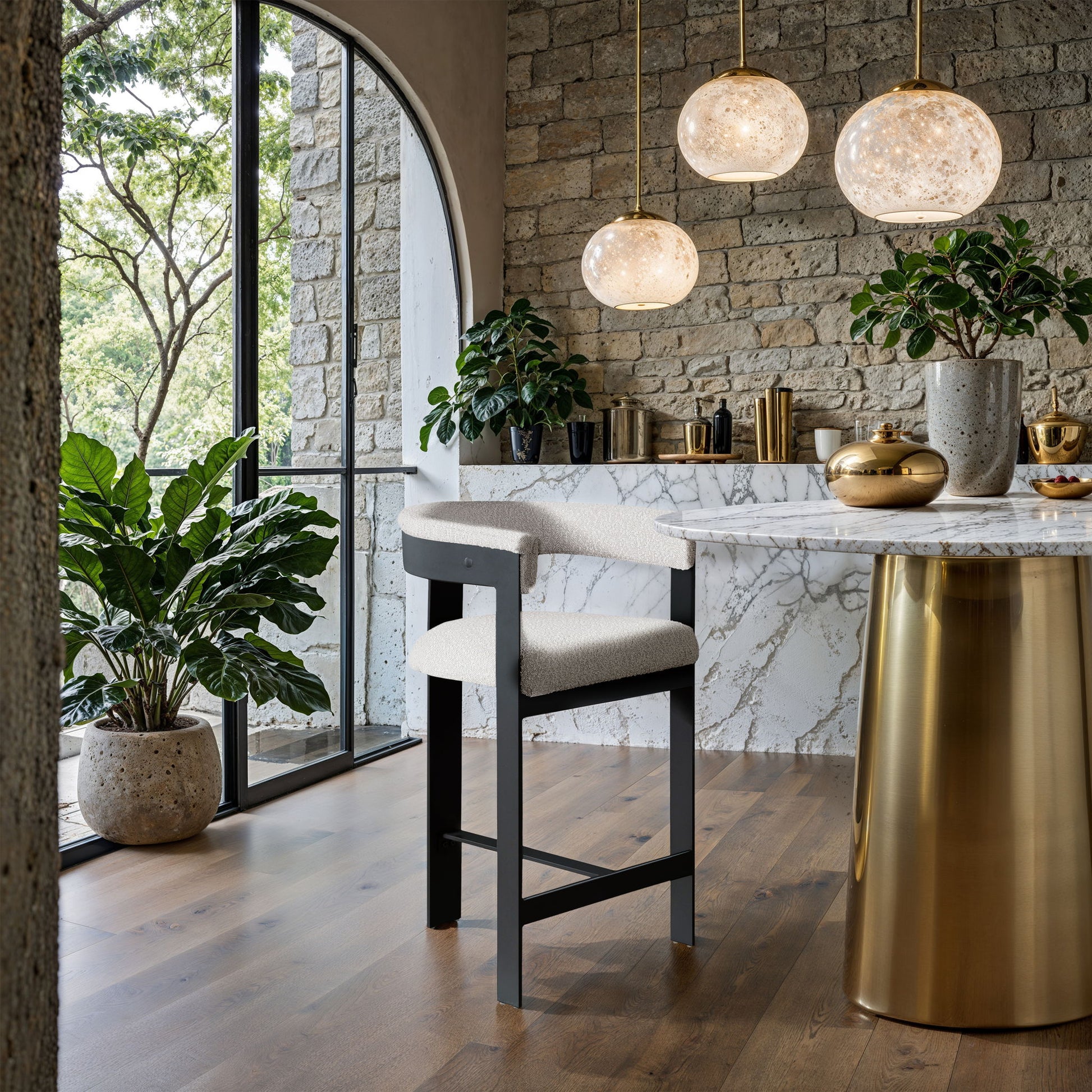 Romeo - Boucle Counter Stool With Black Base (Set of 2) - Cream