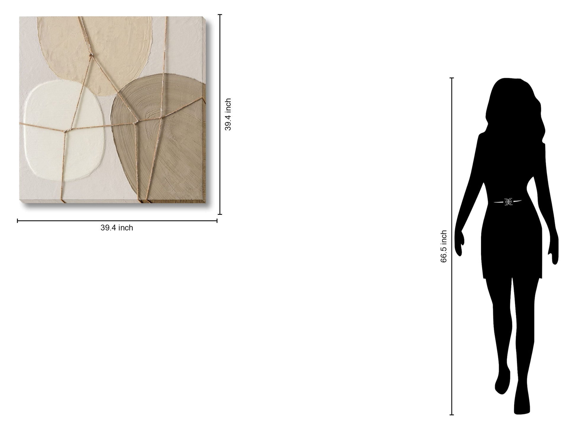 Discover the subtle elegance of "Tactile Taupe Geo Modern," a hand-painted 3D canvas that brings contemporary abstract art into your living space. This mixed media piece features textured geometric shapes in soft taupe, cream, and beige tones, artistically accented with natural rope for added depth and tactile interest. Crafted on a durable canvas base, it arrives ready to hang with professional mounting hardware, making it an effortless statement piece for your living room, bedroom, or office. Each purchase also supports a meaningful cause, donating a meal to a hungry American child, blending art with heart.