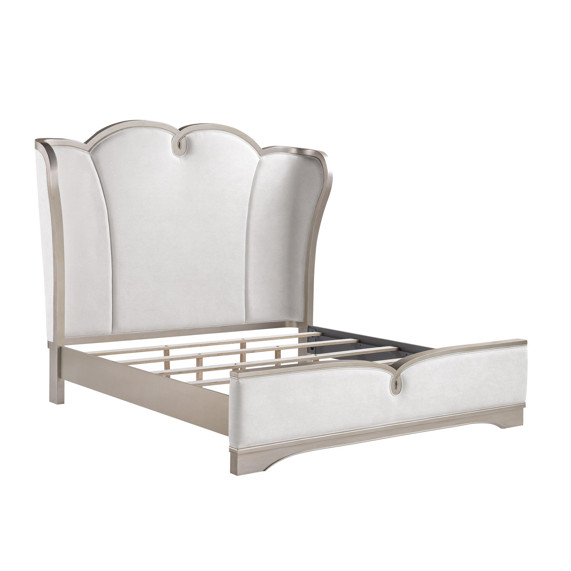 The Rose Bedroom Collection transforms your space into a serene retreat, blending timeless elegance with modern comfort. Its sculpted wingback headboard and soft champagne finish create an inviting centerpiece, while the upholstered panels add warmth and sophistication. The matching dresser and chest feature smooth fronts, gold-accented hardware, and rich wood tops, offering both beauty and functionality. Perfect for creating a peaceful, stylish sanctuary, this collection brings charm and grace to any bedroom.