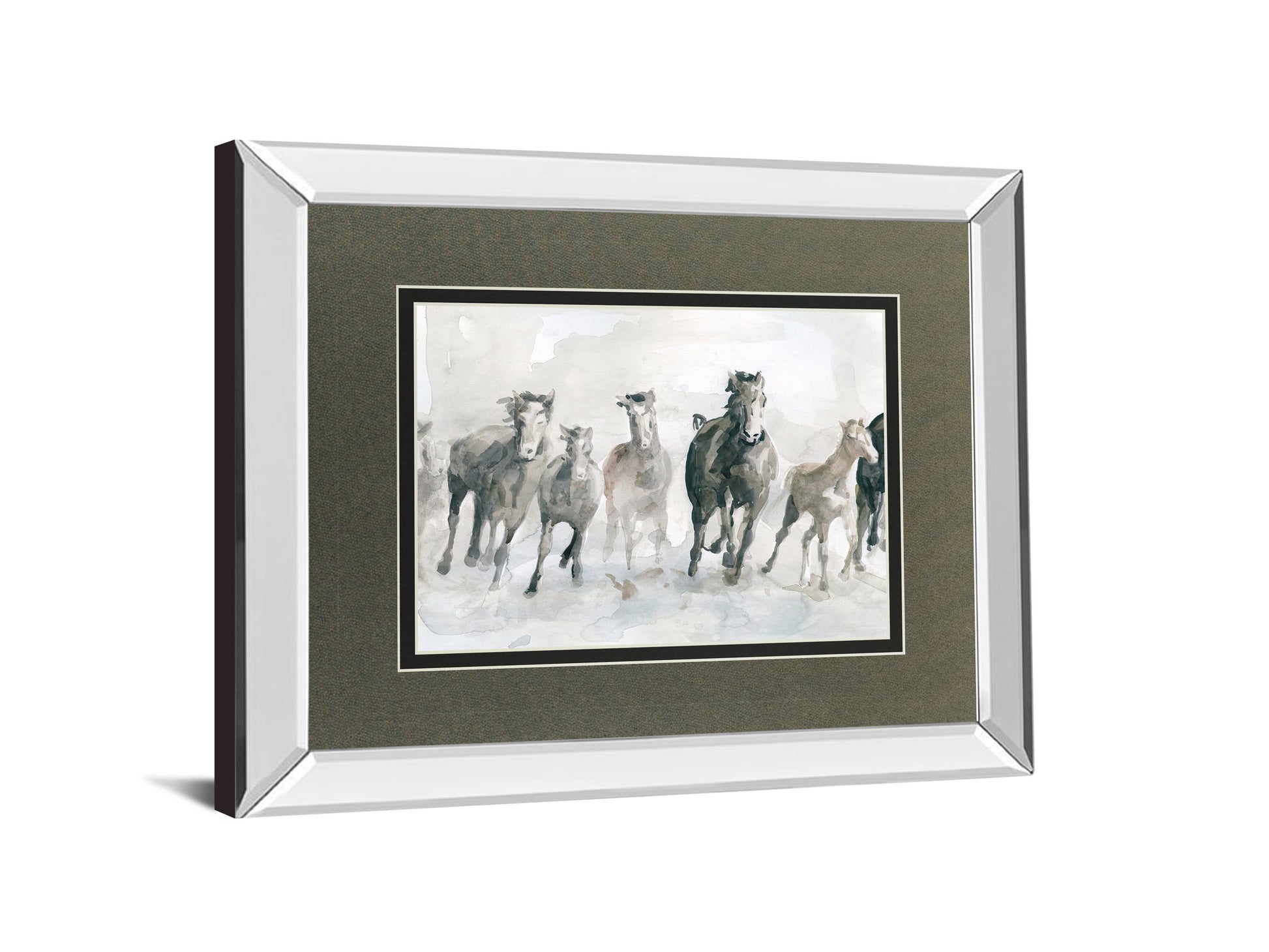Experience the gentle motion and freedom of wild horses captured in a soft watercolor palette with this captivating piece. The mirrored frame adds a modern shimmer that enhances the subtle grays, browns, and blacks of the artwork, creating a sophisticated contrast that draws the eye. Double-matted with fine materials and protected by real glass, this framed art brings a serene yet dynamic energy to any living room or office, blending traditional style with contemporary elegance effortlessly.