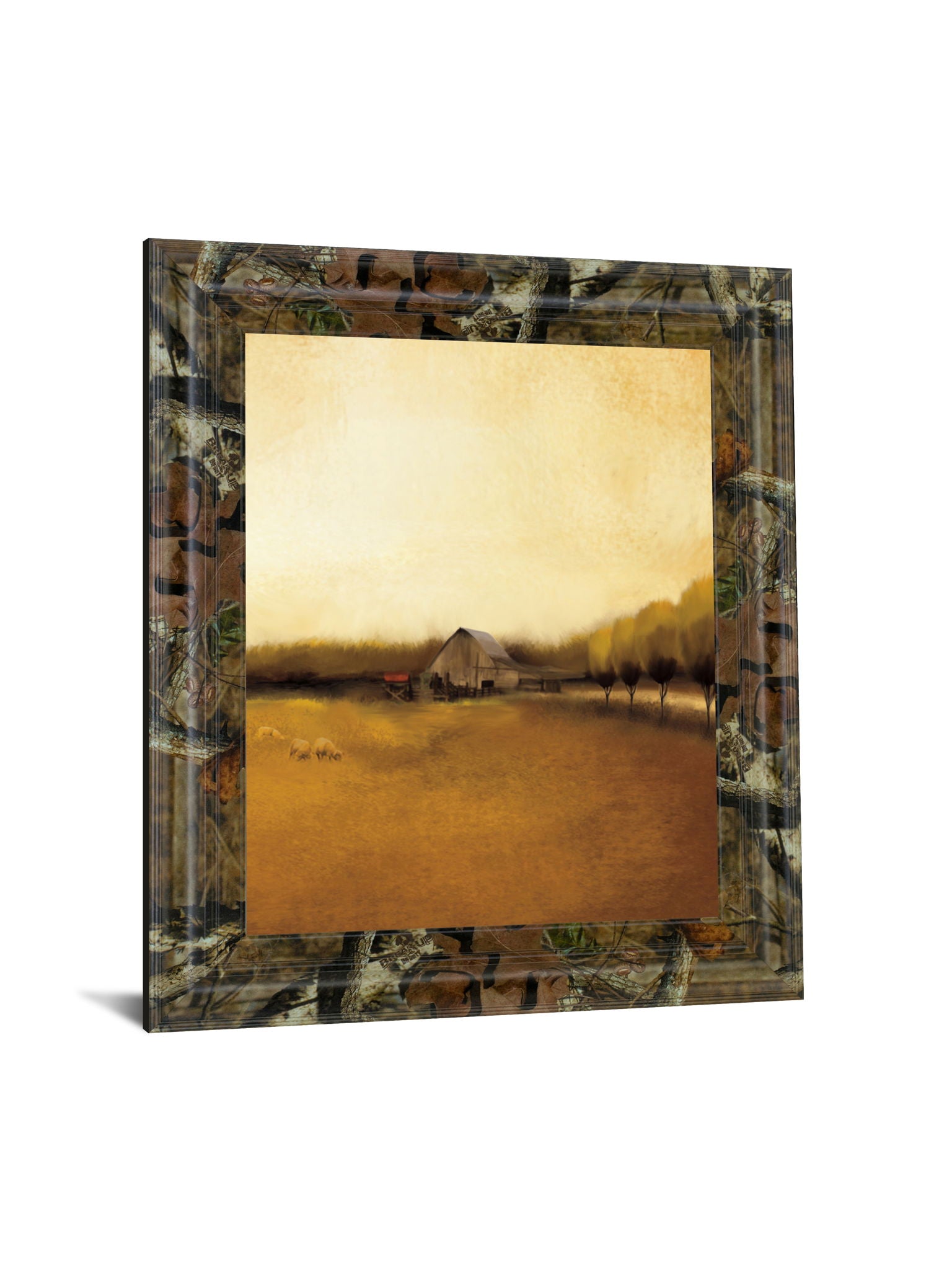 Step into a world of rustic tranquility with this captivating framed wall art that evokes the peaceful charm of rural life. The scene features a softly painted barn nestled among golden fields and a row of trees, with gentle sheep grazing nearby, inviting you to pause and savor the calm of the countryside. Encased in a distinctive camouflage-patterned frame with premium real glass, this piece adds a unique blend of natural elegance and warmth to any living room, den, or office. Expertly crafted and ready to hang, it brings a timeless pastoral beauty that enriches your home with a sense of serene escape.