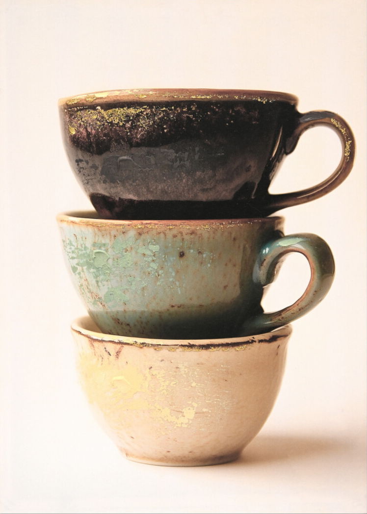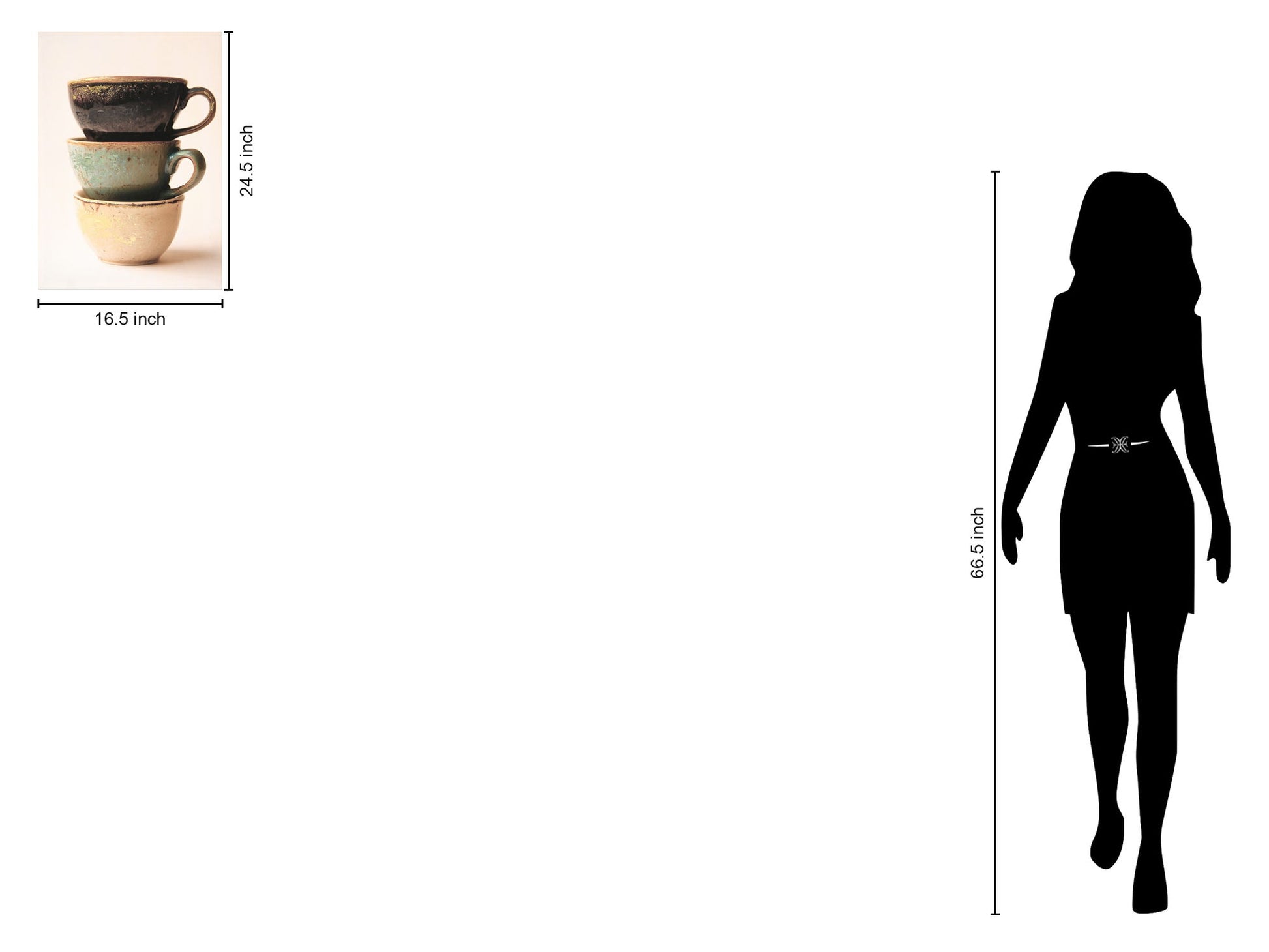 Embrace the charm of rustic elegance with this stunning photograph of stacked ceramic cups. The glitter accents add a touch of sparkle, making it a perfect piece for kitchens or dining areas. Its vertical orientation and frameless design offer a modern twist on classic art.