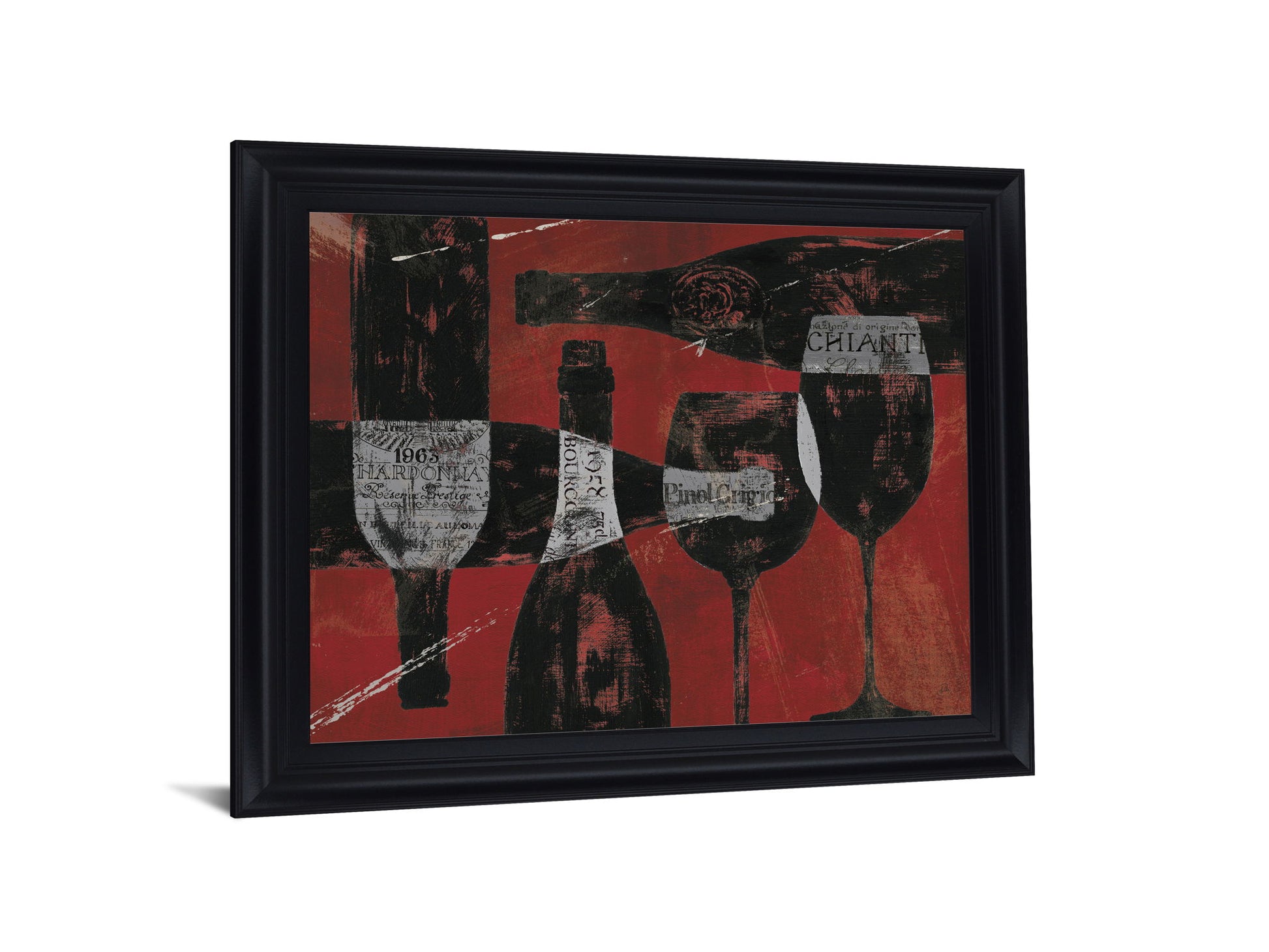 Step into an intimate world where rich reds and deep blacks tell a story of refined taste and celebration. This contemporary graphic art captures the essence of a sophisticated wine tasting, featuring bold silhouettes of bottles and glasses set against a vibrant red backdrop. Encased in a sleek midnight aura frame with crystal-clear glass, it brings warmth and elegance to your dining room, kitchen, or living space, transforming your walls into an inviting tribute to hospitality and style.