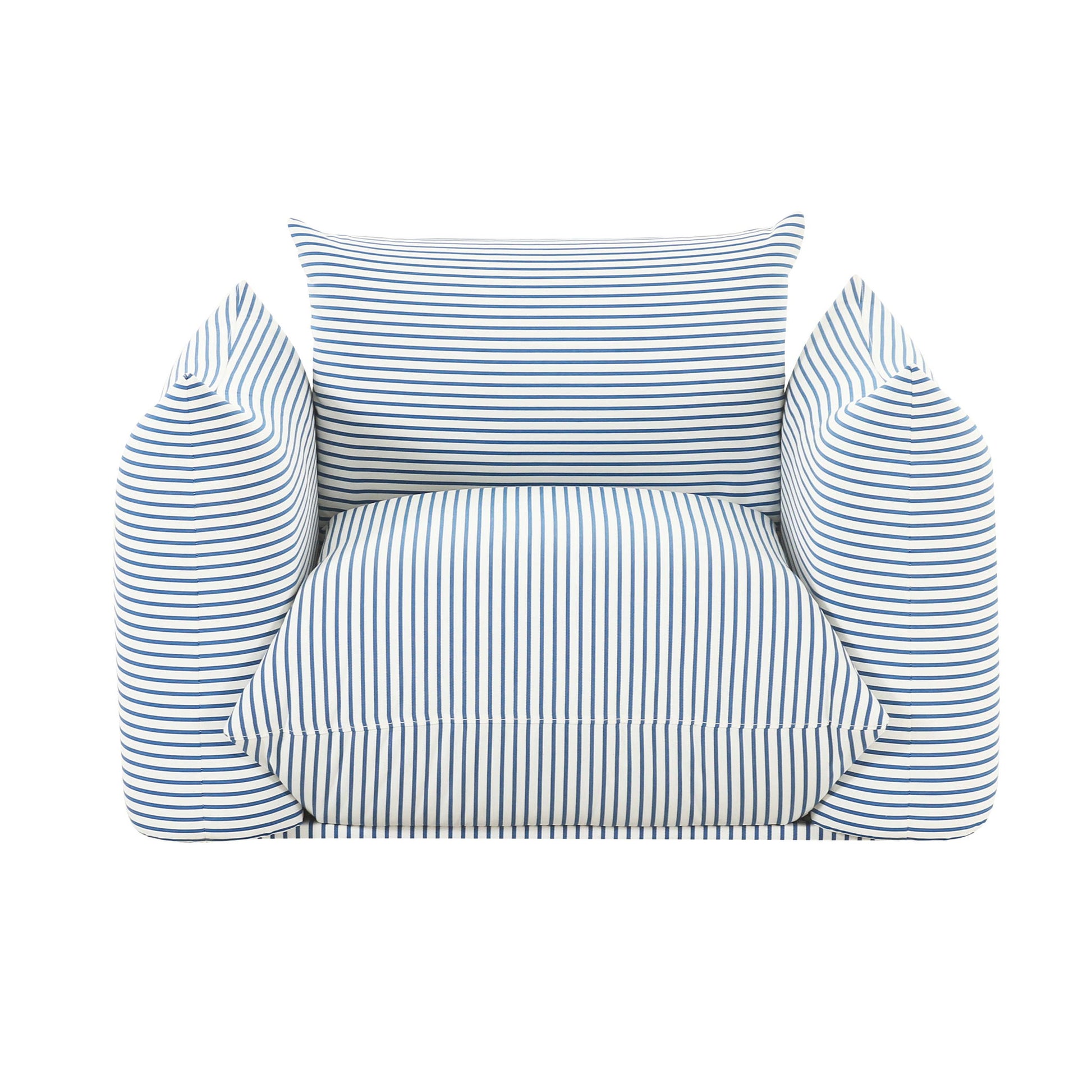 Meet Saint Tropez's bolder, outdoor counterpart. The striped Saint Tropez chair adds another layer of fun and flexibility to your life. With its playful design and sturdy construction, its pillow-ey silhouette exudes whimsical charm while offering both comfort and style. Upholstered in outdoor-safe performance fabric, this chair ensures both durability and on-trend aesthetics, solidifying its status as the must-have statement piece of the season.