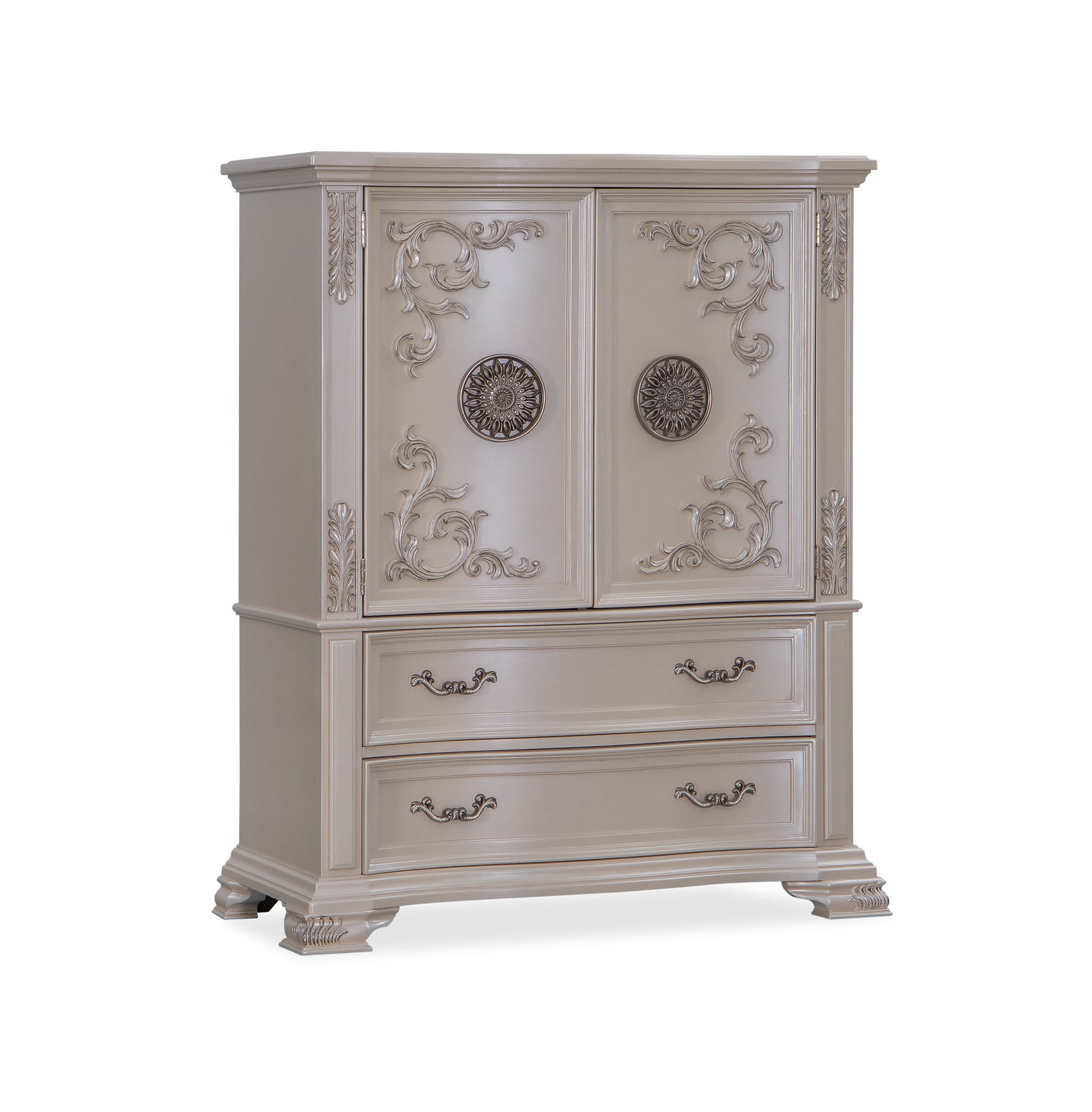 Introducing the Santa Monica Bedroom Collection — a timeless blend of classic charm and modern sophistication, now showcased in a stunning finish that brings a fresh, airy elegance to any space. Each piece is beautifully accented with detailed nail-head trim that adds depth and character against the smooth, luminous surface, while the tufted upholstered headboard serves as a luxurious focal point balancing both comfort and style. Thoughtfully designed and expertly crafted, this collection creates an inviting, refined retreat where the pearl white finish, nail-head detailing, and tufted headboard come together in seamless harmony.