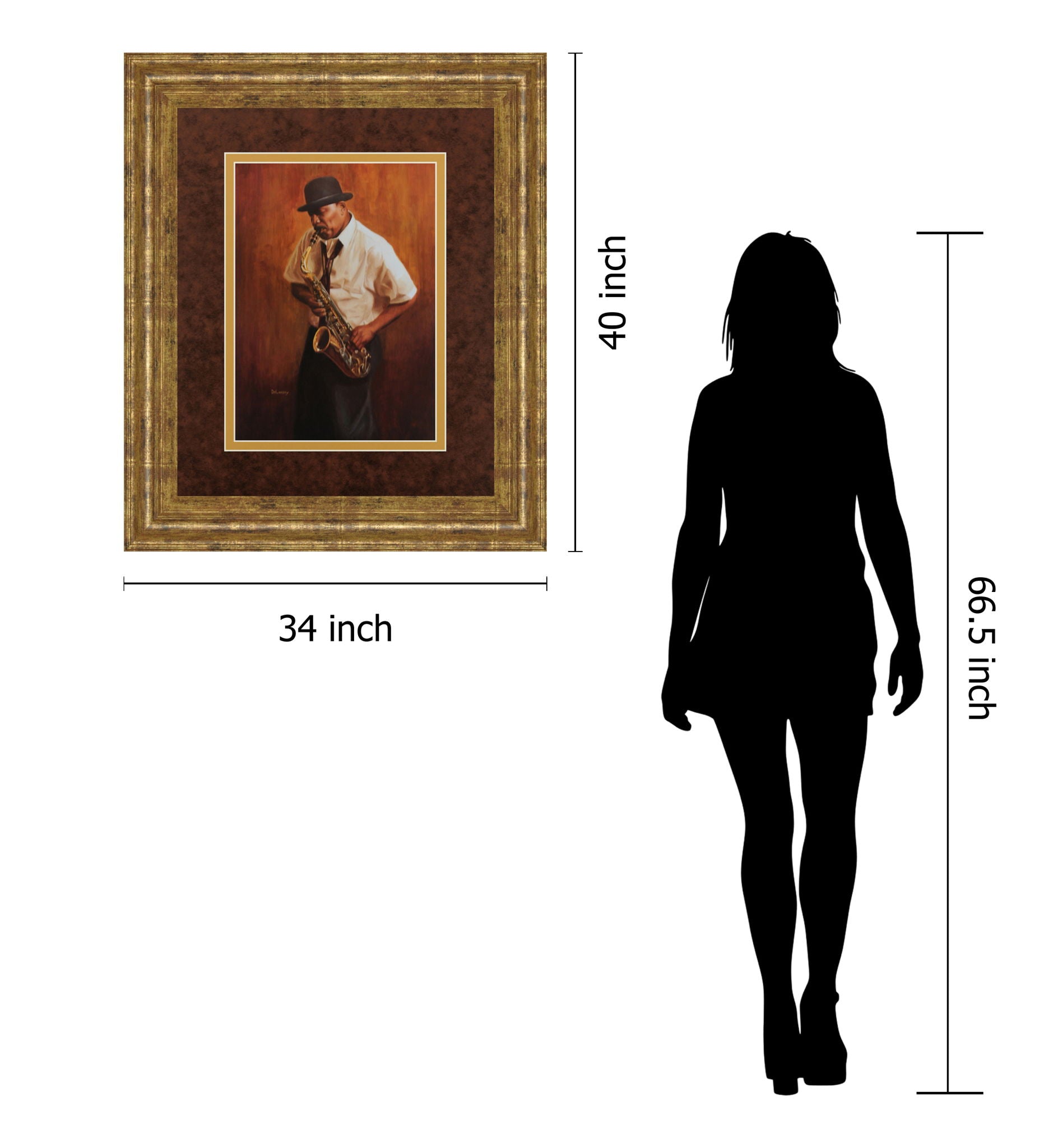 Step into a world where music breathes life into every corner with this evocative mixed media piece, capturing a saxophonist lost in the soulful embrace of his instrument. The warm palette of browns, golds, and blacks envelops the scene, evoking the intimate glow of a late-night jazz club. Framed in a radiant gilded finish with double matting in complementary earth tones, this artwork offers depth and elegance, making it an ideal centerpiece for living rooms, music rooms, or offices. Crafted with care and protected by real glass, it invites you to celebrate the timeless magic of jazz and the passion of artistic expression.