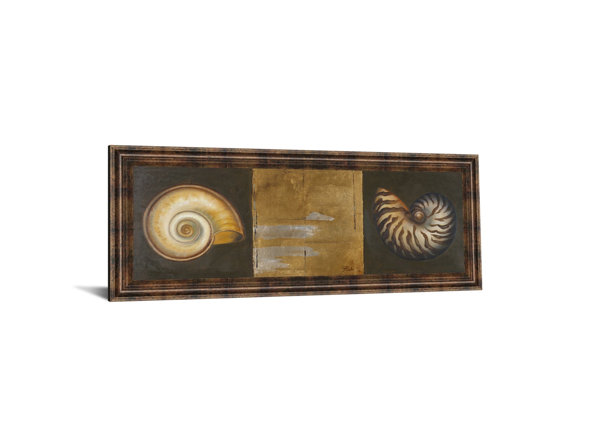 Immerse yourself in the tranquil charm of the sea with this exquisite framed wall art featuring two beautifully detailed seashells. Set against a rich, textured backdrop of gold and muted earth tones, the artwork captures the timeless elegance of coastal nature. The dark chocolate frame enhances the depth and sophistication of the piece, making it a refined focal point for any living room or office. Crafted with mixed media and real glass, this horizontal artwork blends natural beauty with artistic craftsmanship, inviting a serene and sophisticated ambiance into your space.