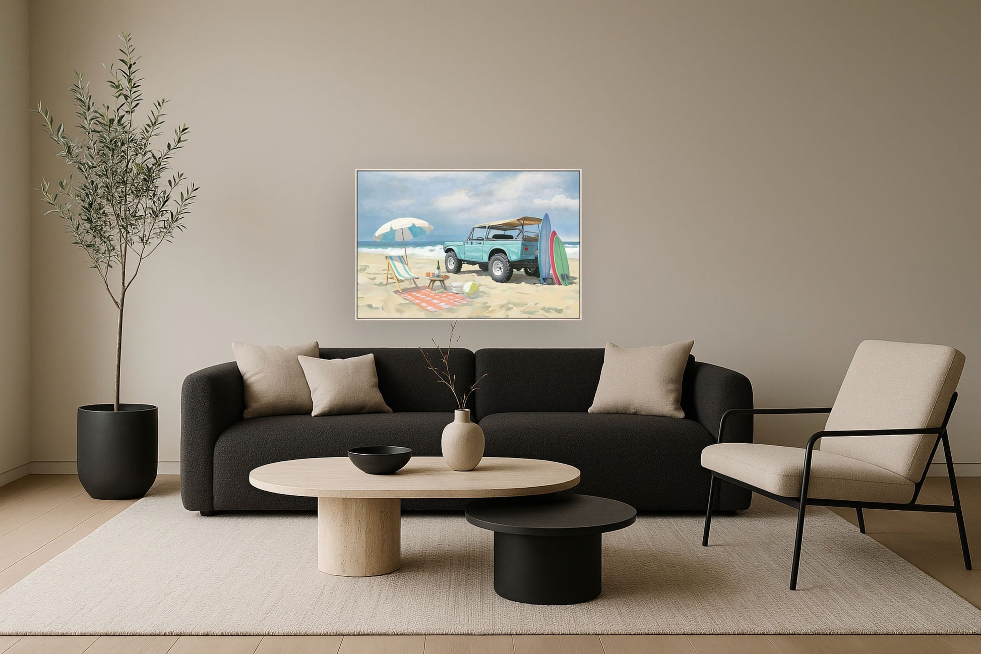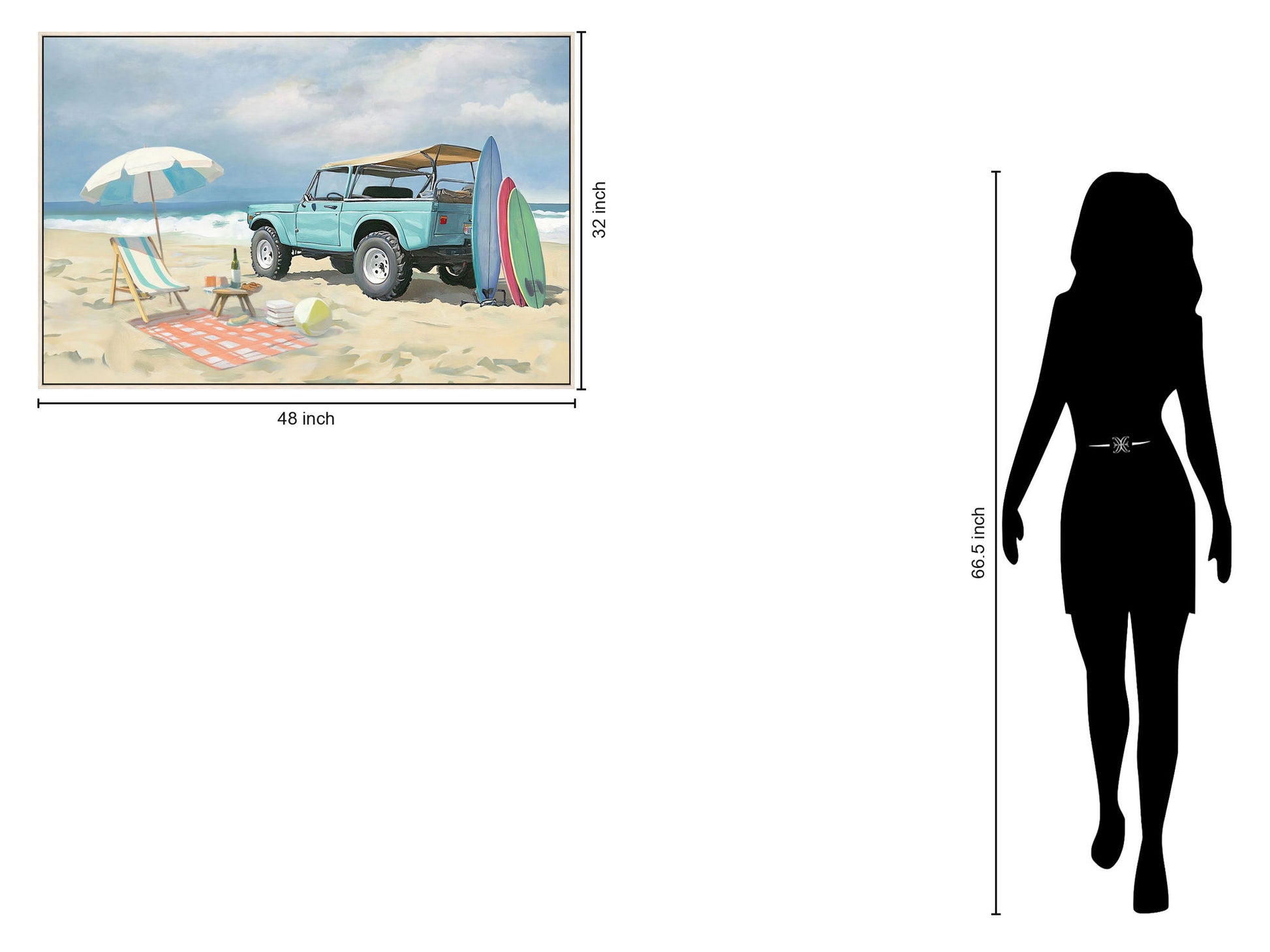 Capture the essence of a carefree coastal escape with this hand-painted canvas featuring a classic vehicle parked on a sun-kissed beach. The serene ocean backdrop, soft sand, and vibrant surfboards evoke a sense of adventure and relaxation, perfect for bringing a breezy, contemporary coastal vibe into your living room, bedroom, or office. Crafted on high-quality canvas with hand-applied accents, this framed artwork offers texture and depth, arriving ready to hang and inspire your daily getaway.