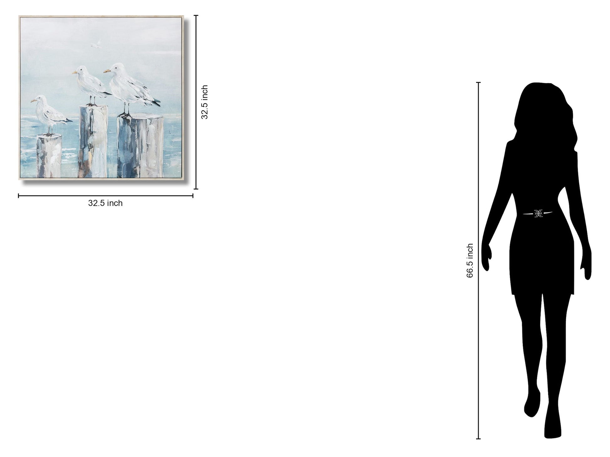 Experience the serene beauty of coastal life with "Coastal Calm: Seagulls at Rest," a hand-painted canvas that captures the tranquil moment of seagulls perched peacefully on weathered posts by the sea. This contemporary oil painting features delicate brushwork and hand-applied accents that add texture and depth, bringing the scene to life with a soothing palette of soft blues, whites, and natural wood tones. Ready to display with its light wood frame and professional mounting hardware, this artwork not only enhances your living room, bedroom, or office but also supports a meaningful cause by donating a meal to a hungry child with each purchase. Embrace the calm and charm of the coast with this elegant and heartfelt piece.