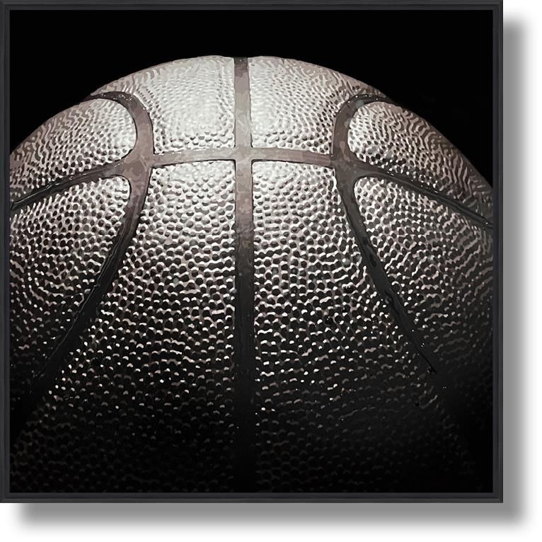 Celebrate the dynamic spirit of basketball with this striking textured wall art. Featuring a close-up of a basketball's pebbled surface, this piece captures the tactile essence of the game with hand-applied accents that add depth and dimension. Sealed with a glossy finish, the artwork radiates a sophisticated shine that enhances every detail. Housed in a sleek black frame, it arrives ready to hang, making it a perfect addition to living rooms, game rooms, or offices where sports enthusiasm shines. This contemporary graphic art piece blends passion and style for a truly unique display.