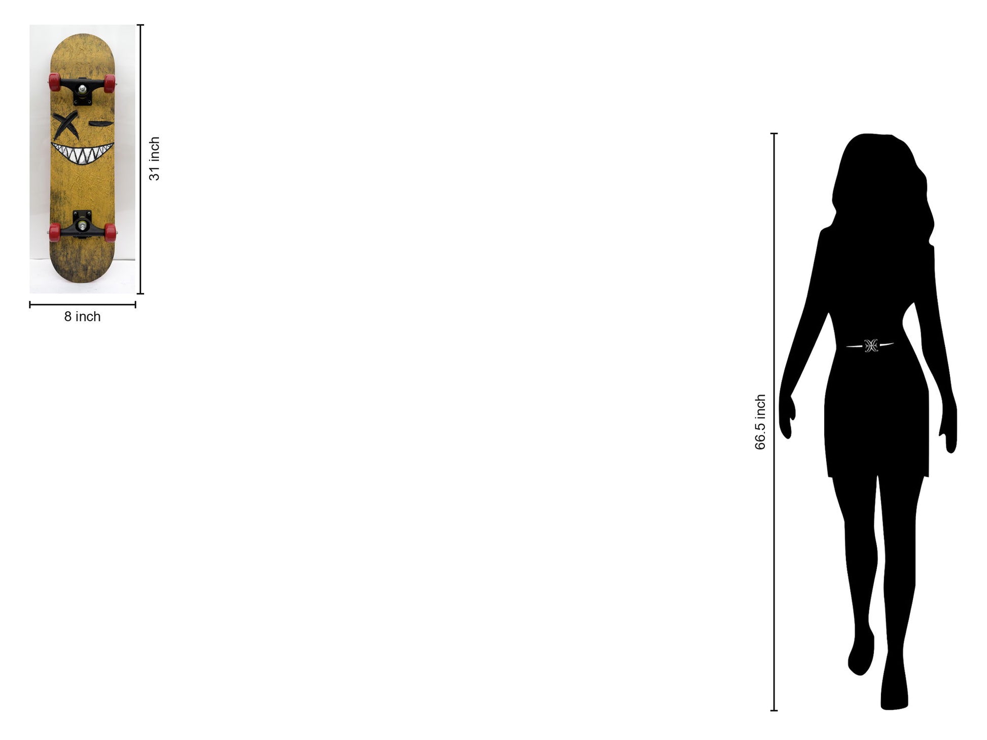 This hand-painted skateboard, titled "Smile Wink," transforms urban street culture into compelling wall art. Crafted from Chinese maple and polystyrene, each piece is hand-embellished to bring texture, depth, and individuality to your space. Featuring a playful, whimsical face design with bold black and white accents on a vibrant yellow background, it captures the spirit of youthful energy and contemporary style. Ready to display with professional mounting hardware, this art piece adds attitude and creativity to youth rooms or playrooms. Plus, every purchase supports a social cause by donating a meal to a hungry American child, making it a meaningful addition to your décor.