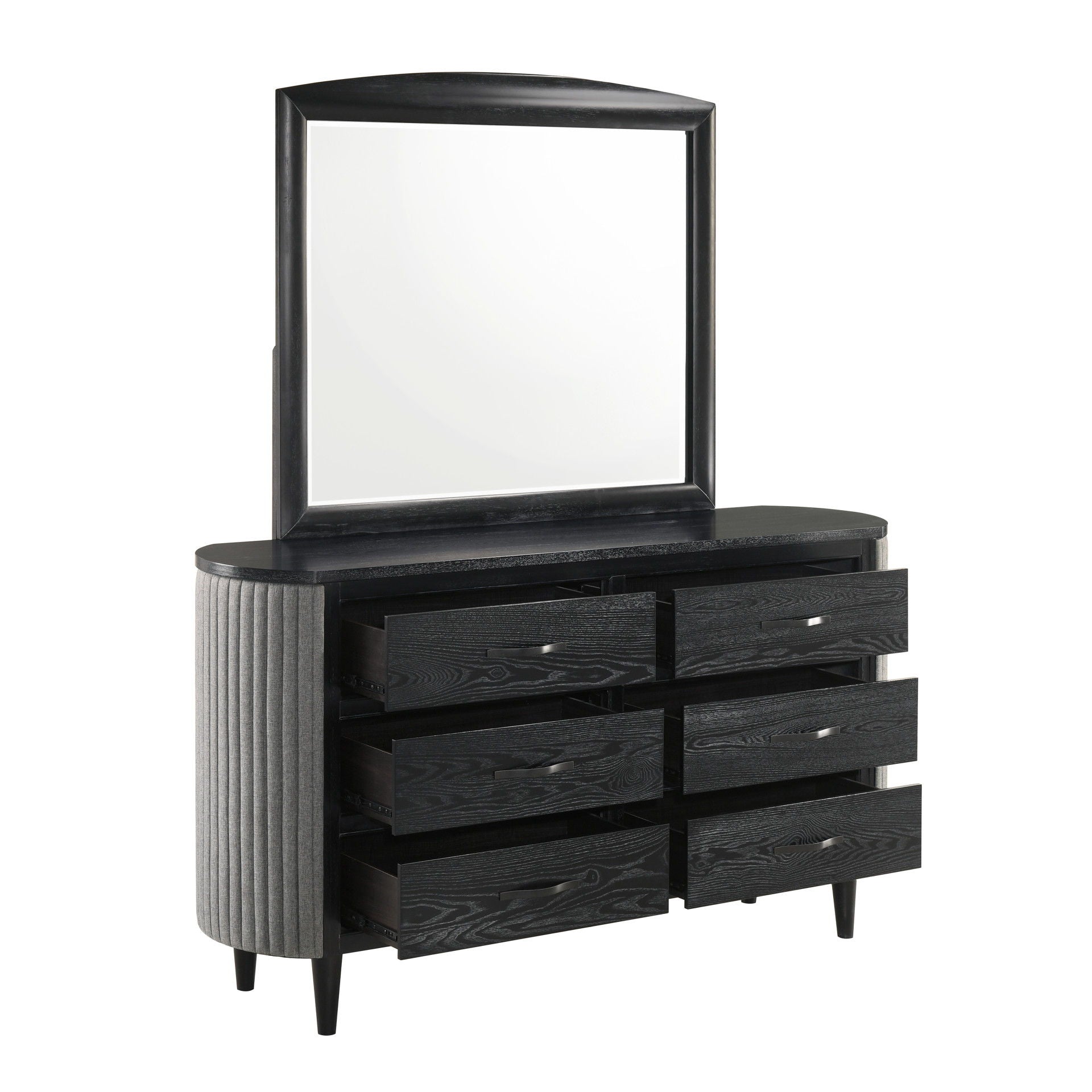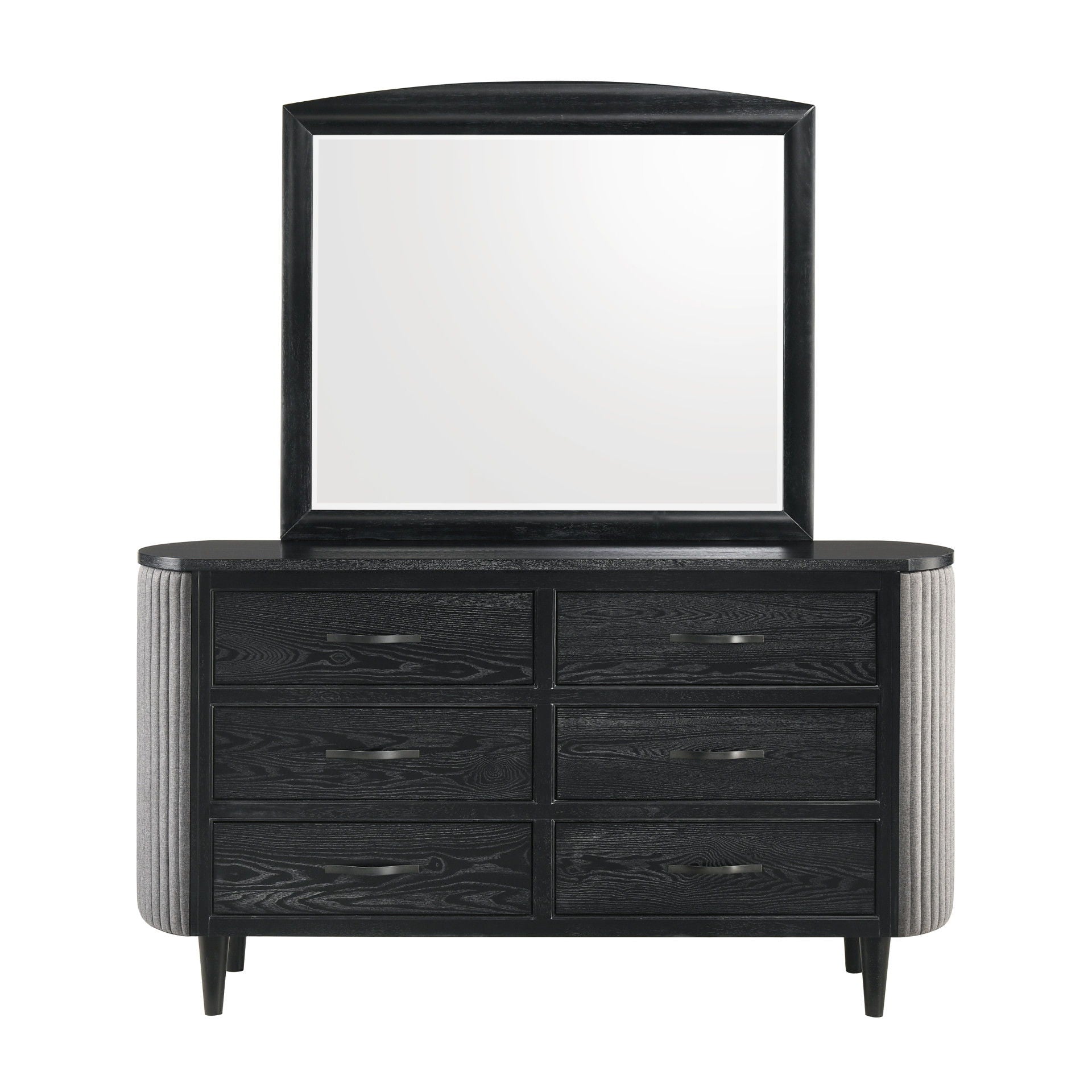 The Skyline Mirror in Onyx merges modern style with craftsmanship, making it a sleek addition to your space. Framed in solid Rubberwood, engineered woods, and Ash Wood veneers, it balances durability and contemporary design. The Onyx Black finish with gray glazing enhances the wood grain for a luxurious look. Encased in this sleek frame, the clear, low-distortion glass provides stunning clarity, delivering true-to-life reflections that brighten your room. A bold, stylish, and functional accent.