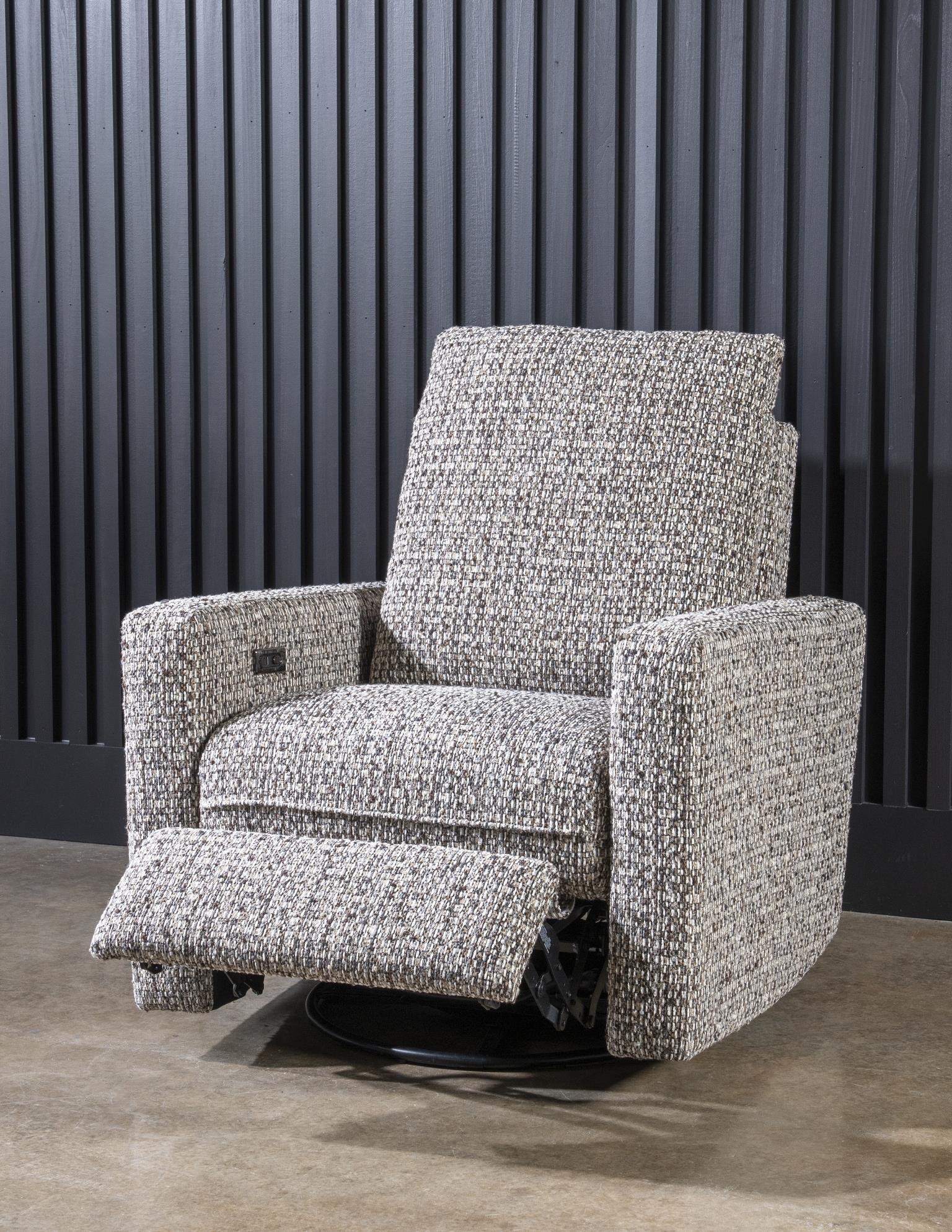 The Solana Group includes a Sofa-Chase configuration with a storage chaise with a lift-up wood tray arm for eating/working, P1 Swivel Gliderand a 30-inch storage ottoman on castors. Features include a storage arm with power grommet, wood console with wireless charging and USB ports