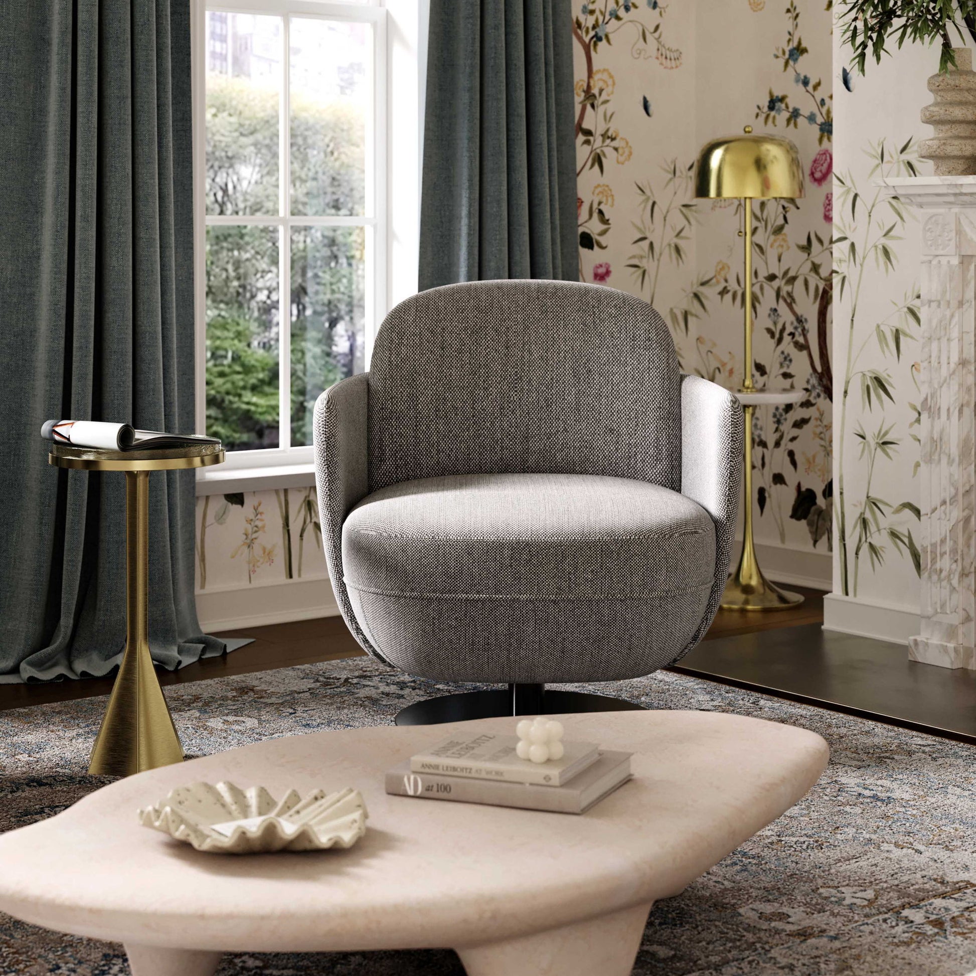 The Solange Swivel Chair is a bold nod to retro style, wrapped in TOV's ultra-soft, easy-clean fabrics. With a supportive high back, full-foam seat, and smooth 360-degree swivel base, it's equal parts comfort and cool. Available in several color options to suit your style.