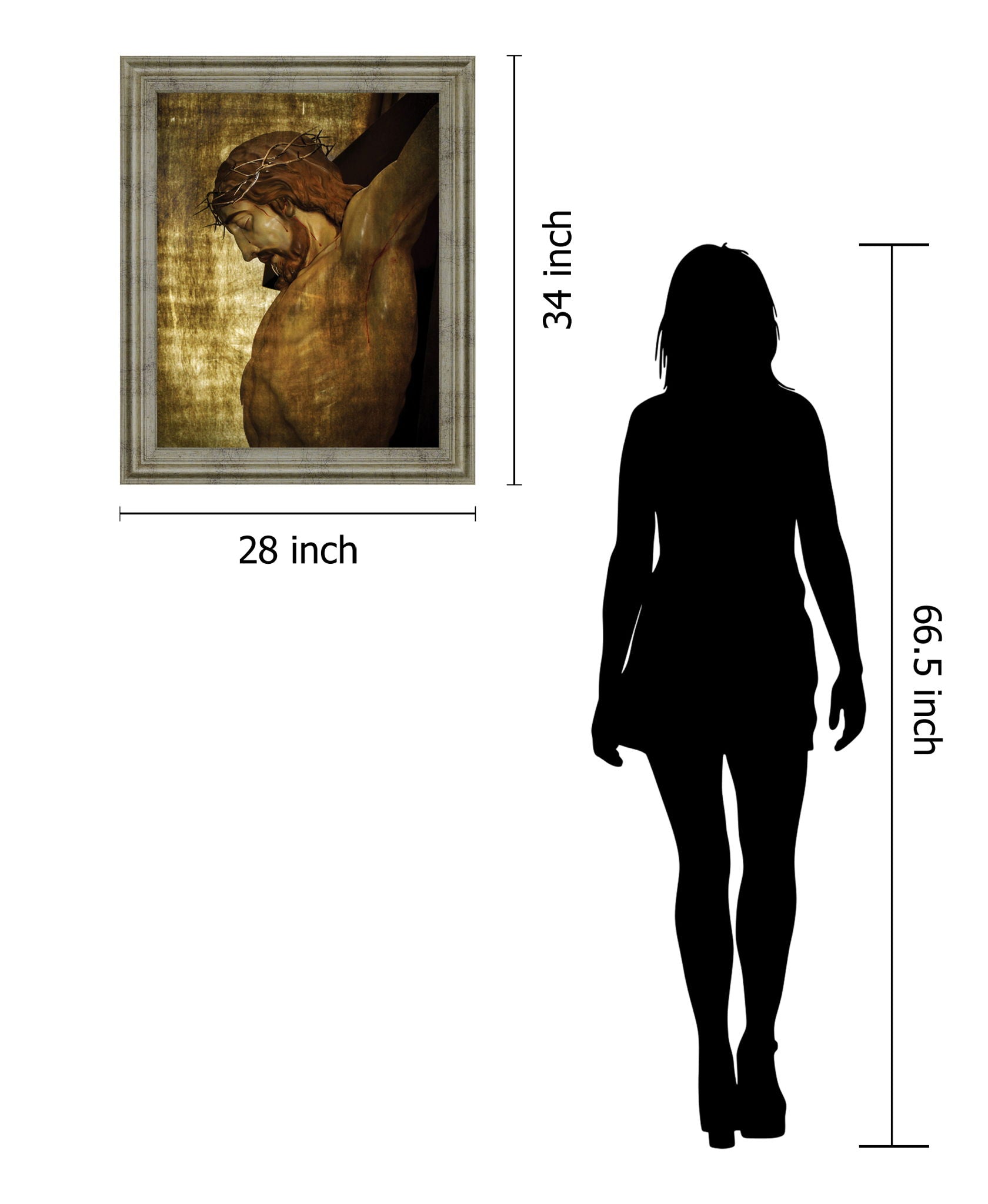This evocative portrayal captures a moment of profound sacrifice and spiritual depth, inviting quiet reflection. The figure, rendered with rich, warm tones of brown, beige, and gold, is crowned with a delicate crown of thorns, symbolizing endurance and faith. Set against a textured, golden backdrop and framed in a crisp chardonnay finish, this piece blends traditional artistry with timeless reverence. Ideal for living rooms, offices, or spiritual spaces, it brings a sense of contemplation and inspiration to any environment. Crafted with premium materials and real glass, this framed wall art offers lasting beauty and strength, ready to hang and uplift your space.