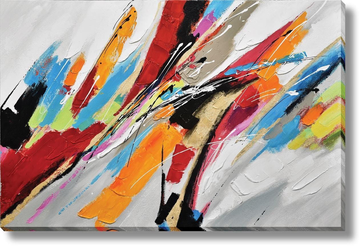 Color Surge Abstract Expression is a vibrant hand-painted wrapped canvas that bursts with dynamic energy and rich texture. This contemporary mixed media piece showcases bold strokes of red, orange, blue, and black on a textured white and gray background, creating a captivating abstract composition. Crafted on durable canvas with acrylic paints, it arrives ready to display with professional mounting hardware, making it an effortless statement piece for living rooms, offices, or modern spaces. Each purchase supports a social cause, donating a meal to a hungry American child, blending art with meaningful impact.