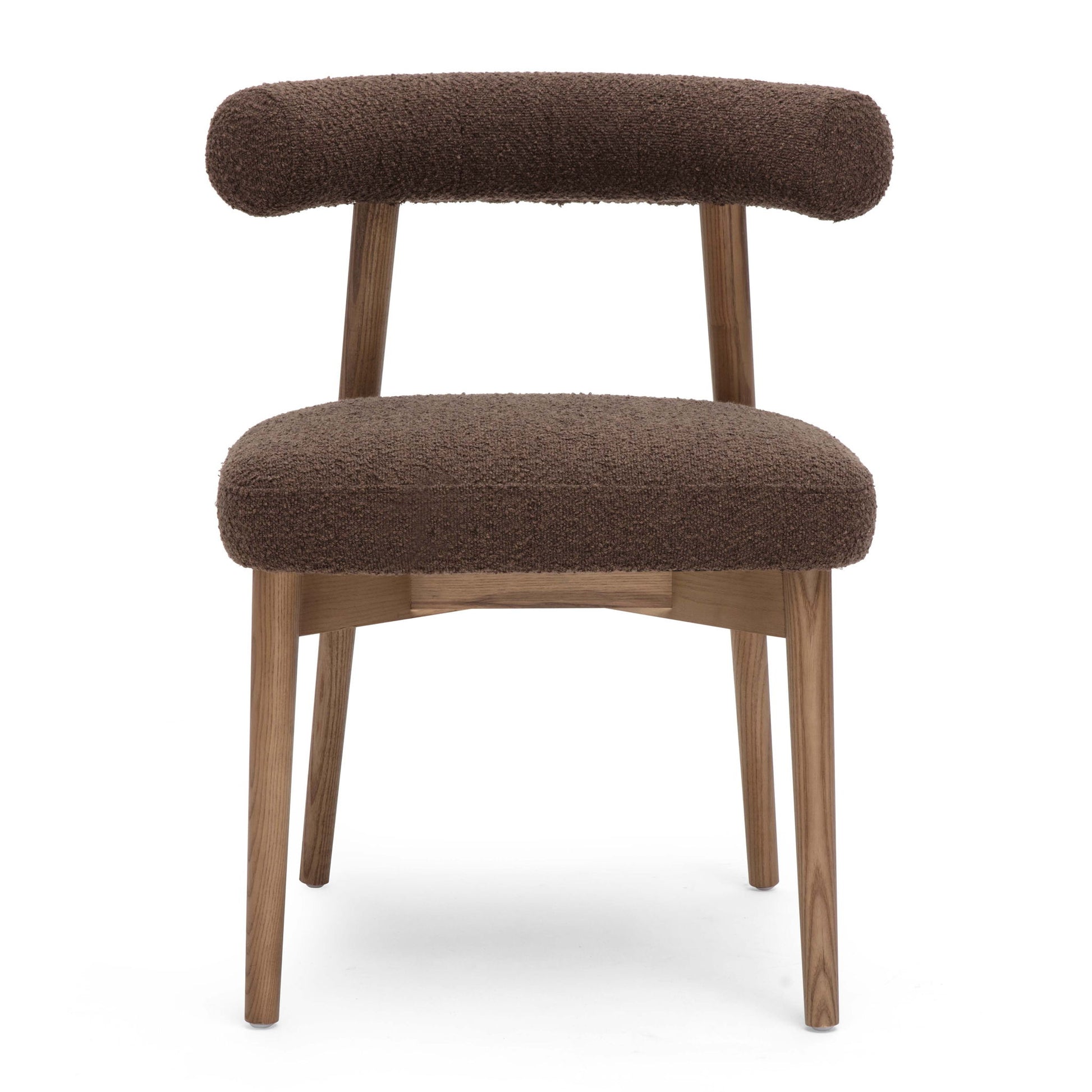 The Spara Side Chair blends Scandinavian simplicity with sumptuous texture—now available in a rich Chocolate Brown performance boucle. Its gently curved back, clean lines, and tactile upholstery make it a versatile accent for dining rooms, desks, or entryways. The chocolate hue adds depth and warmth, offering a grounded yet stylish take on modern minimalism.