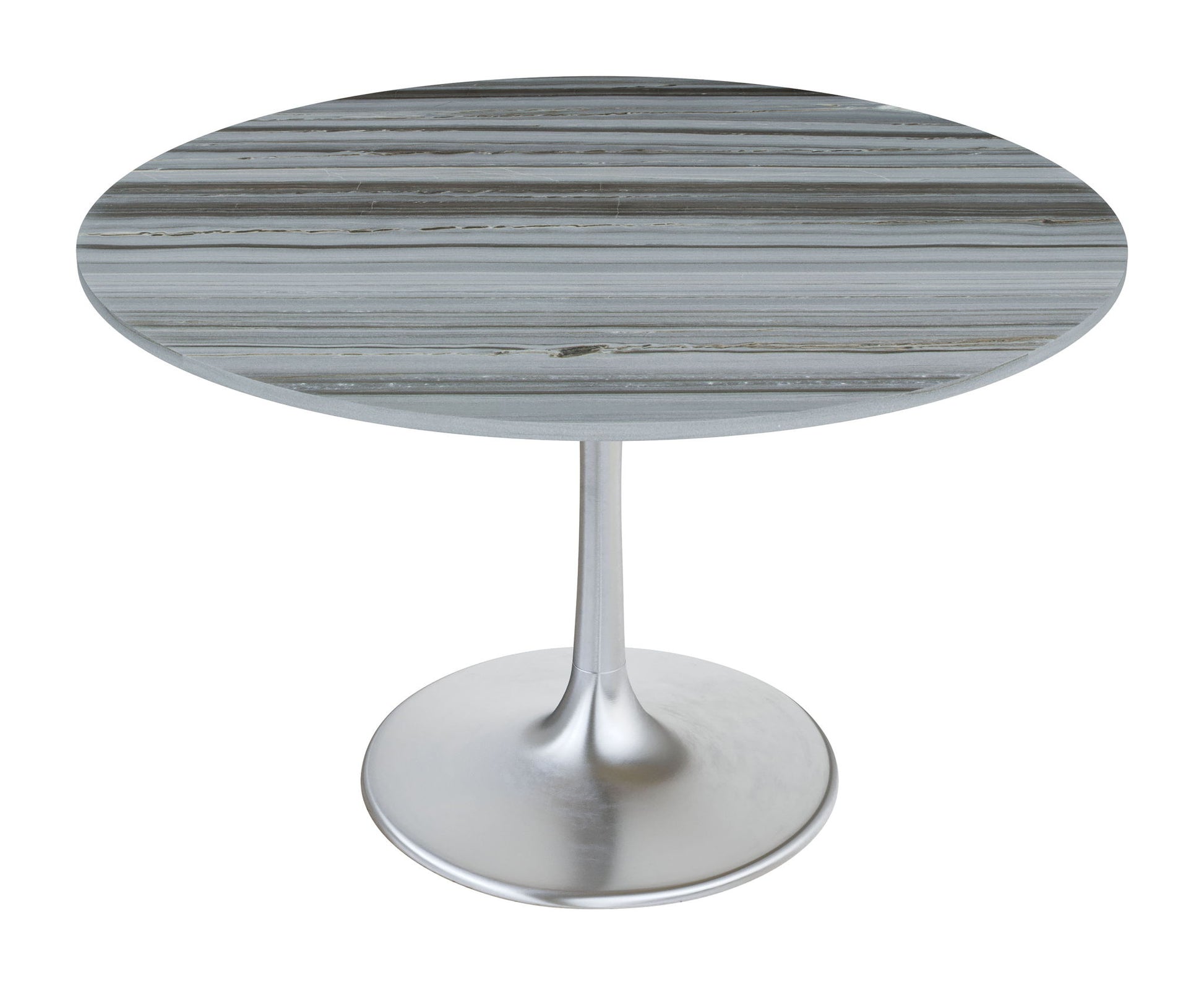 The Star City Dining Table has a raw marble top with a steel base.  This table looks great in any modern glam, or deco dining area.
