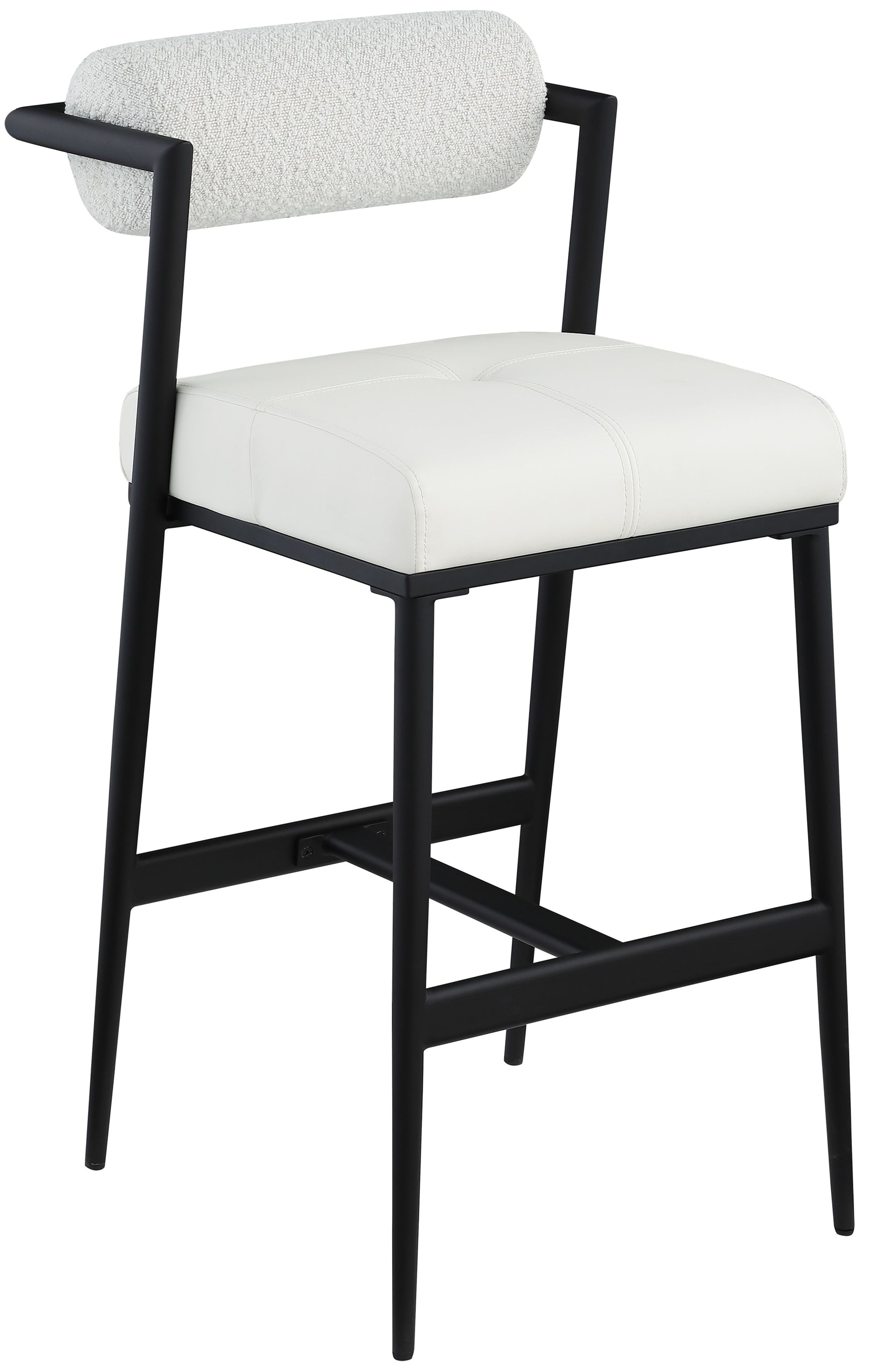 Make your home bar or kitchen counter area the most popular place in your home when you outfit it with these Stryker boucle fabric and leather bar counter stool. This pack of two stools puts a new twist on the traditional bar stool with a sleek silhouette and luxurious upgrades, including seats covered in soft vegan leather that's buttery soft and looks oh-so-real. The backs are upholstered in rich black boucle fabric for added comfort and beauty.
