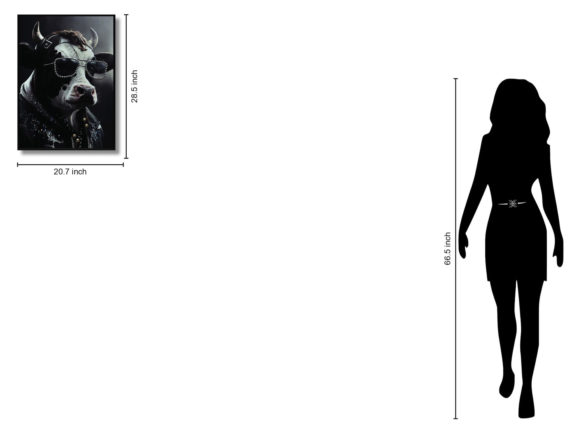Bring a bold and playful edge to your space with "Rockstar Cow with Studded Attitude." This captivating graphic art piece features a striking cow adorned with studded sunglasses and a studded jacket, blending contemporary style with a touch of whimsy. Printed on high-quality gloss canvas, the artwork is hand-embellished with studs that add texture and depth, making it truly one-of-a-kind. The black polystyrene frame complements the dark, moody tones of the piece, while the glossy finish enhances color vibrancy and light reflection. Ready to hang and perfect for living rooms, offices, or bedrooms, this artwork adds personality and attitude to any modern interior.