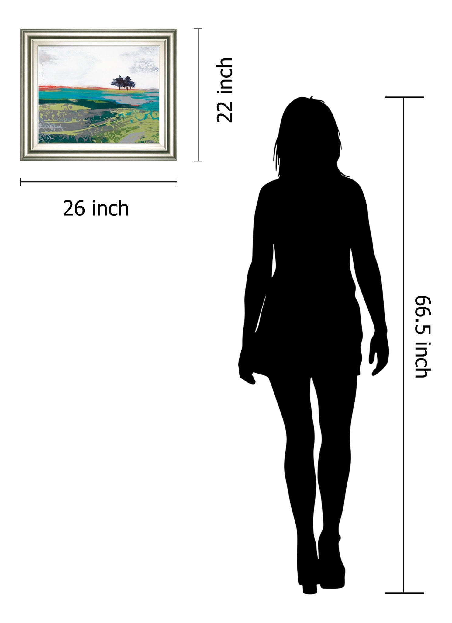 Experience the soothing embrace of a gentle summer wind with this captivating landscape art. The vibrant interplay of greens, blues, and subtle earth tones evokes open fields kissed by sunlight, while the elegant silver frame adds a refined touch to any living room, office, or bedroom. Crafted with meticulous care and ready to hang, this piece invites a breath of nature's tranquility into your everyday space, blending contemporary charm with serene beauty.