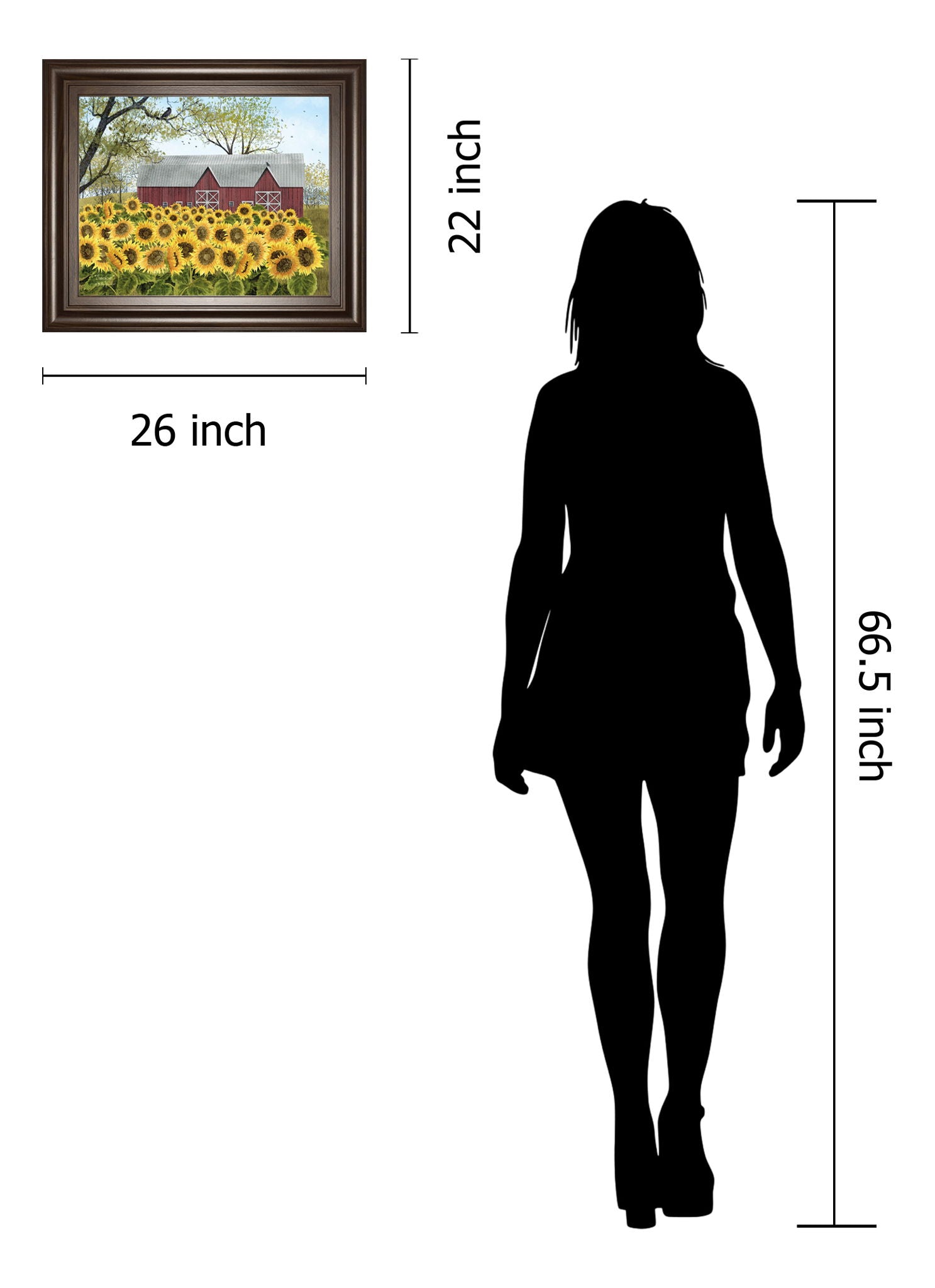 Bask in the warm glow of a sunflower field stretching toward a clear blue sky, with a charming red barn nestled in the background. This serene scene captures the essence of peaceful countryside summers, inviting you to bring a touch of rustic tranquility into your home. Encased in a rich cinnamon mocha frame with premium real glass, this artwork combines timeless beauty with elegant protection, making it a perfect addition to your living room, kitchen, or dining space.