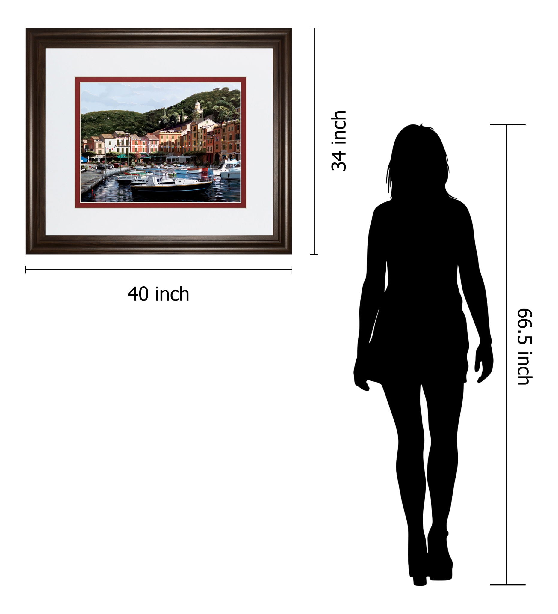 Step into the tranquil beauty of the Italian Riviera with this captivating framed wall art, showcasing a sunlit harbor scene filled with colorful buildings and gently moored boats. The lush green hills rise behind the vibrant waterfront, evoking a peaceful afternoon by the sea. Enhanced by a rich brown frame and double matting in white and warm red, this piece adds depth and elegance while the premium glass protects and enriches the vivid imagery. Perfect for living rooms, dining areas, or offices, it invites you to bring a touch of coastal charm and timeless serenity into your space.
