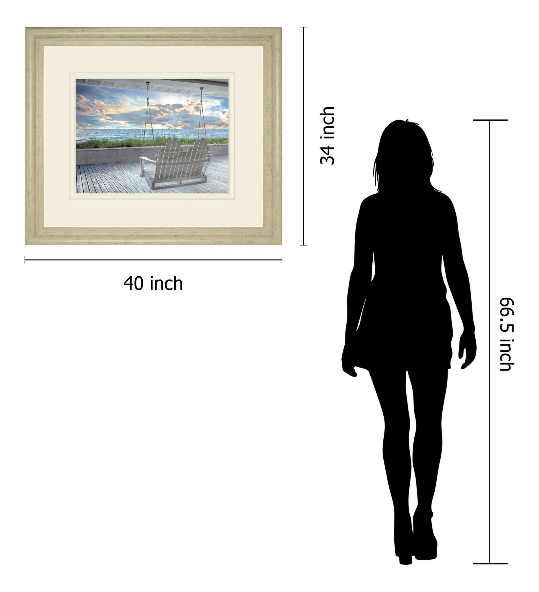 Step into a peaceful coastal escape with this beautifully framed wall art featuring a charming porch swing overlooking the ocean. The soft tan frame and double-matted cream accents enhance the serene blues and greens of the sea and sky, creating a soothing atmosphere perfect for any living room, bedroom, or office. Protected by crystal-clear premium glass, this ready-to-hang piece invites you to unwind and dream of gentle sea breezes and tranquil sunsets every day, bringing a touch of calm and contemporary coastal style to your space.