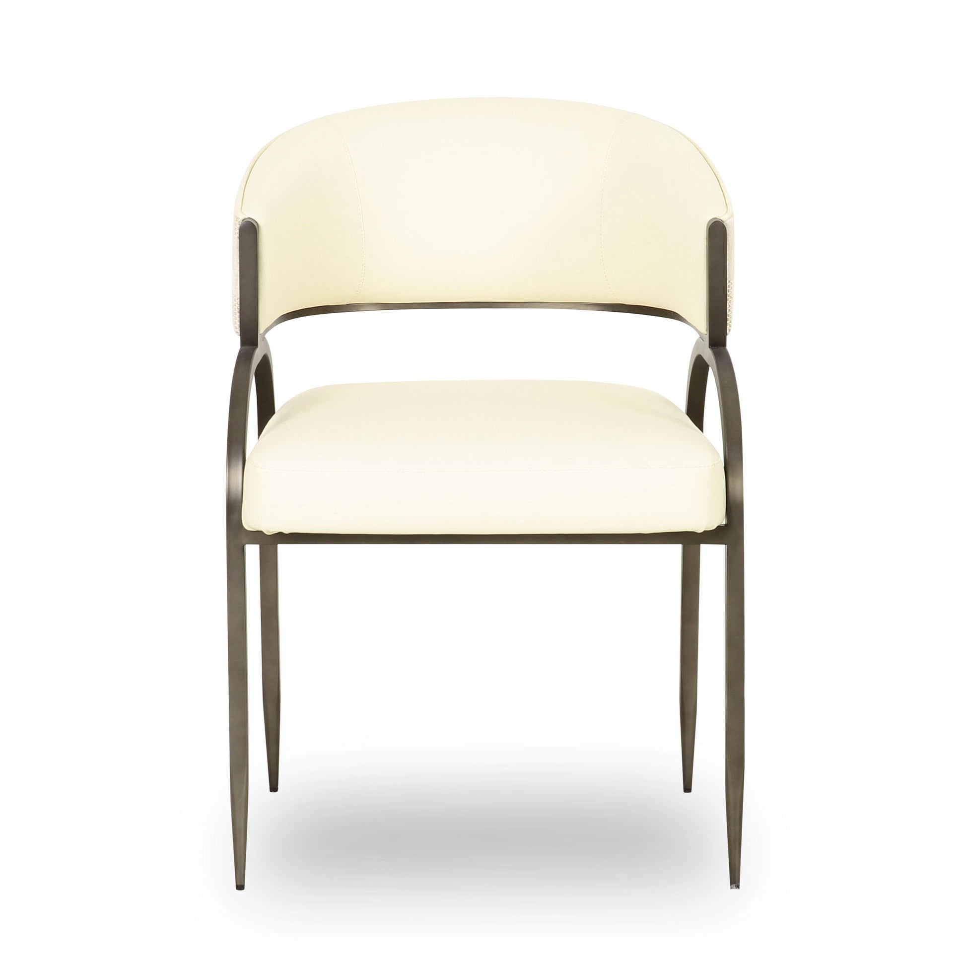Tatum - Vegan Leather And 2-Tone Jacquard Dining Chair - Cream
