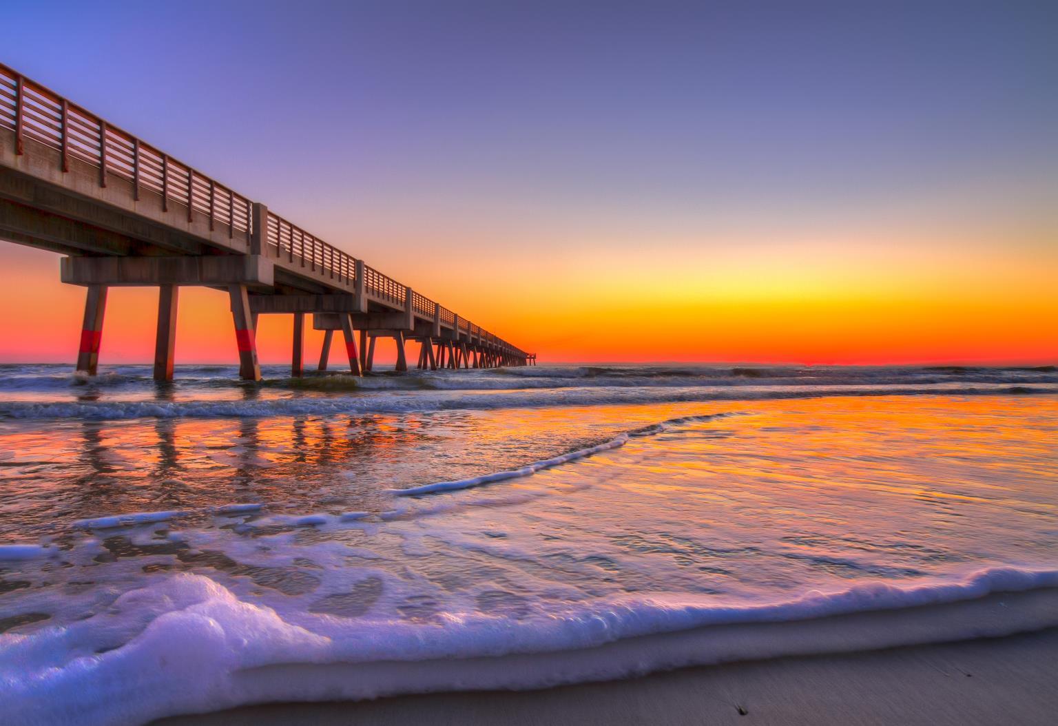Temp Glass With Foil - Jacksonville Beach Pier - Blue