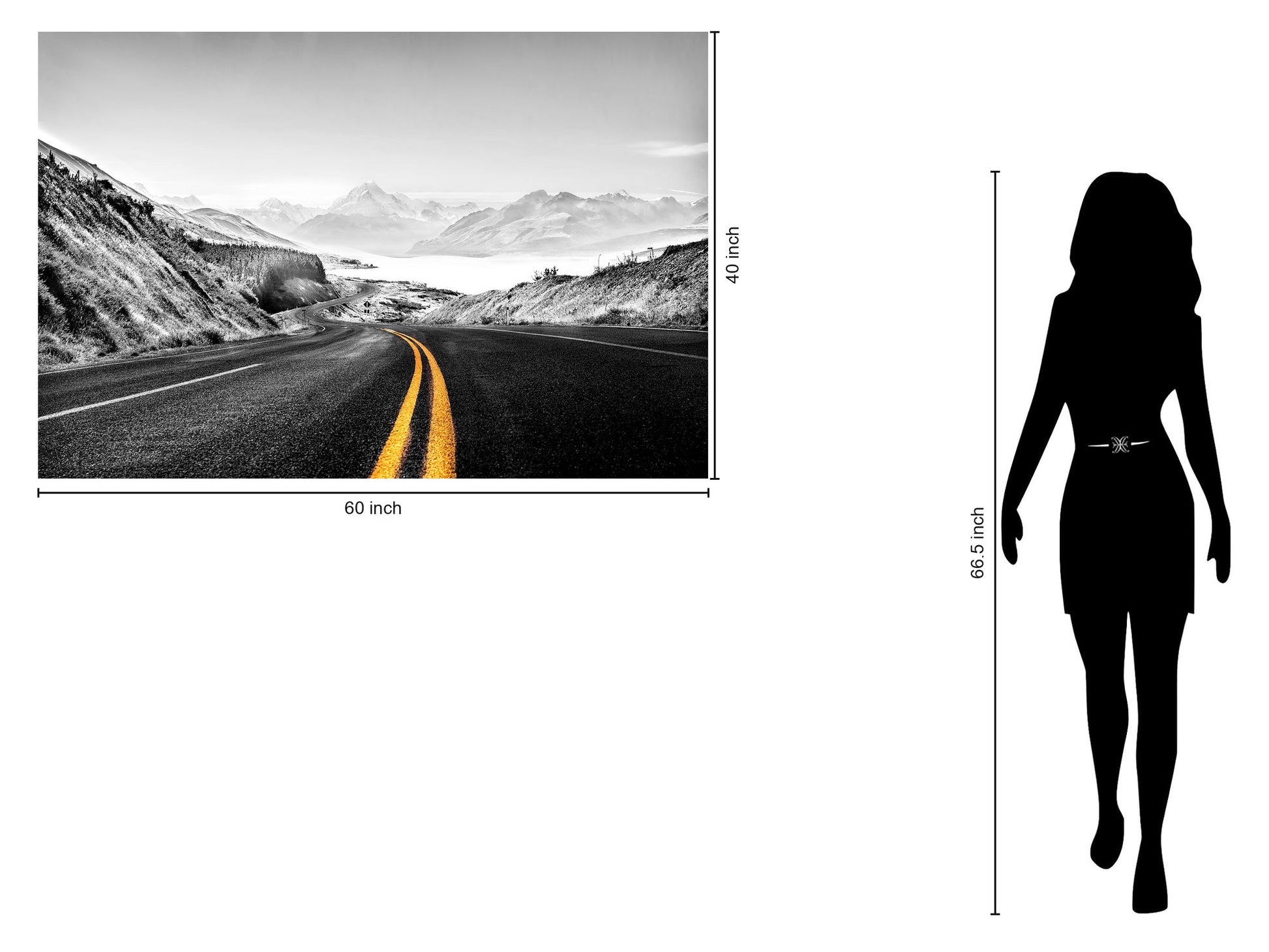 Montain Road captures a striking landscape photograph printed on durable tempered glass, offering a sleek, dimensional finish with hand-embellished details beneath the glass surface. This contemporary piece features a winding mountain road leading into misty peaks, rendered in monochrome tones with vivid yellow road lines that draw the eye inward. Designed for safety and strength, the toughened glass adds a polished shine and depth, making it a perfect addition to living rooms or offices. Ready to hang with sawtooth hangers, this artwork combines artistic beauty with practical design, while supporting a social cause by donating a meal to a hungry child with each purchase.
