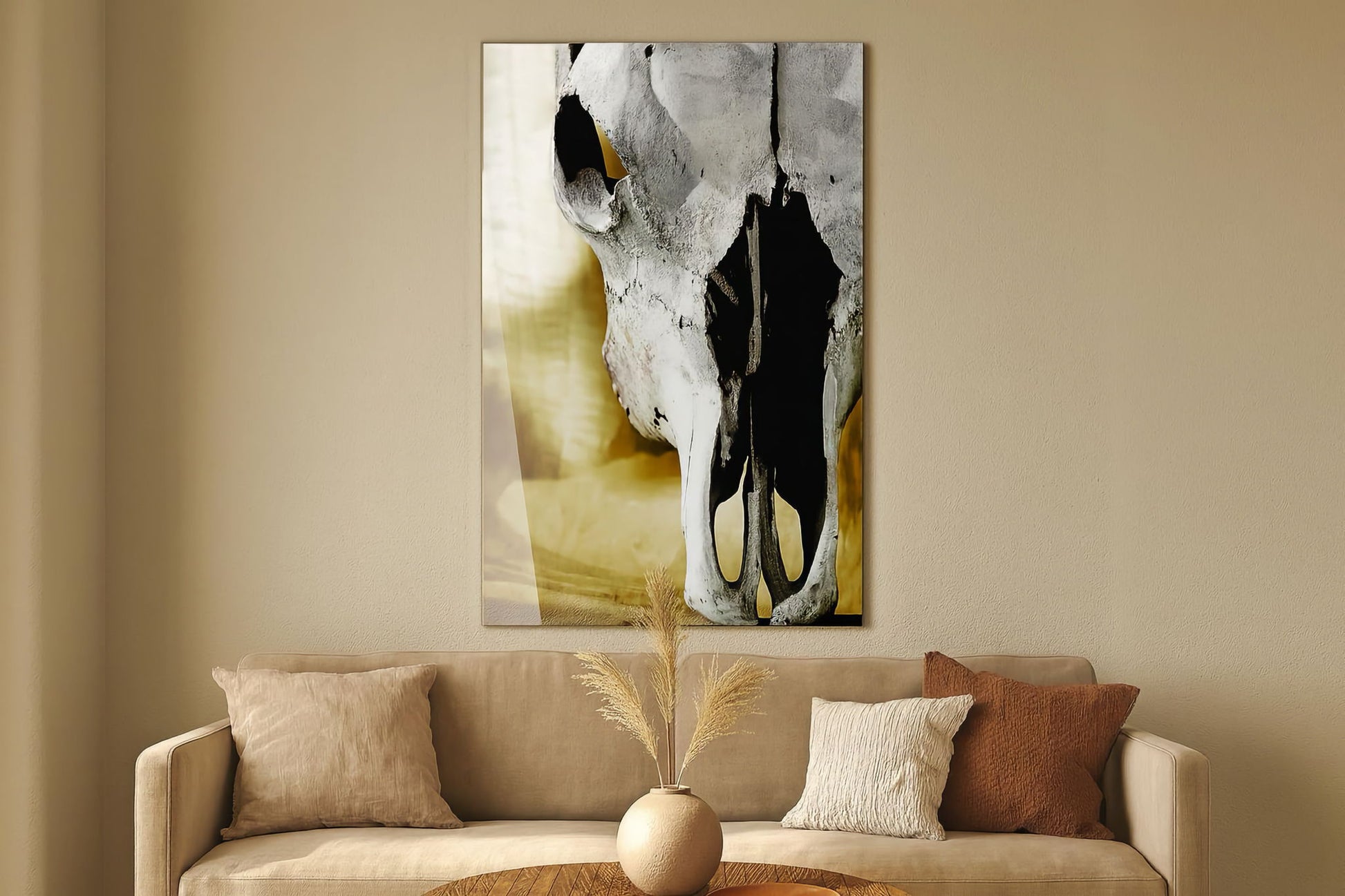 This striking "Cattle Skull" wall art piece captures the raw, natural beauty of a weathered skull, presented with a contemporary edge. Printed and hand-embellished beneath tempered glass, it offers a sleek, dimensional finish that adds depth and shine to any room. Durable and safe, the toughened glass ensures longevity while the frameless design keeps the focus on the evocative subject. Perfect for living rooms, offices, or dens, this artwork not only enhances your space but also supports a meaningful cause, donating a meal to a hungry American child with each purchase.