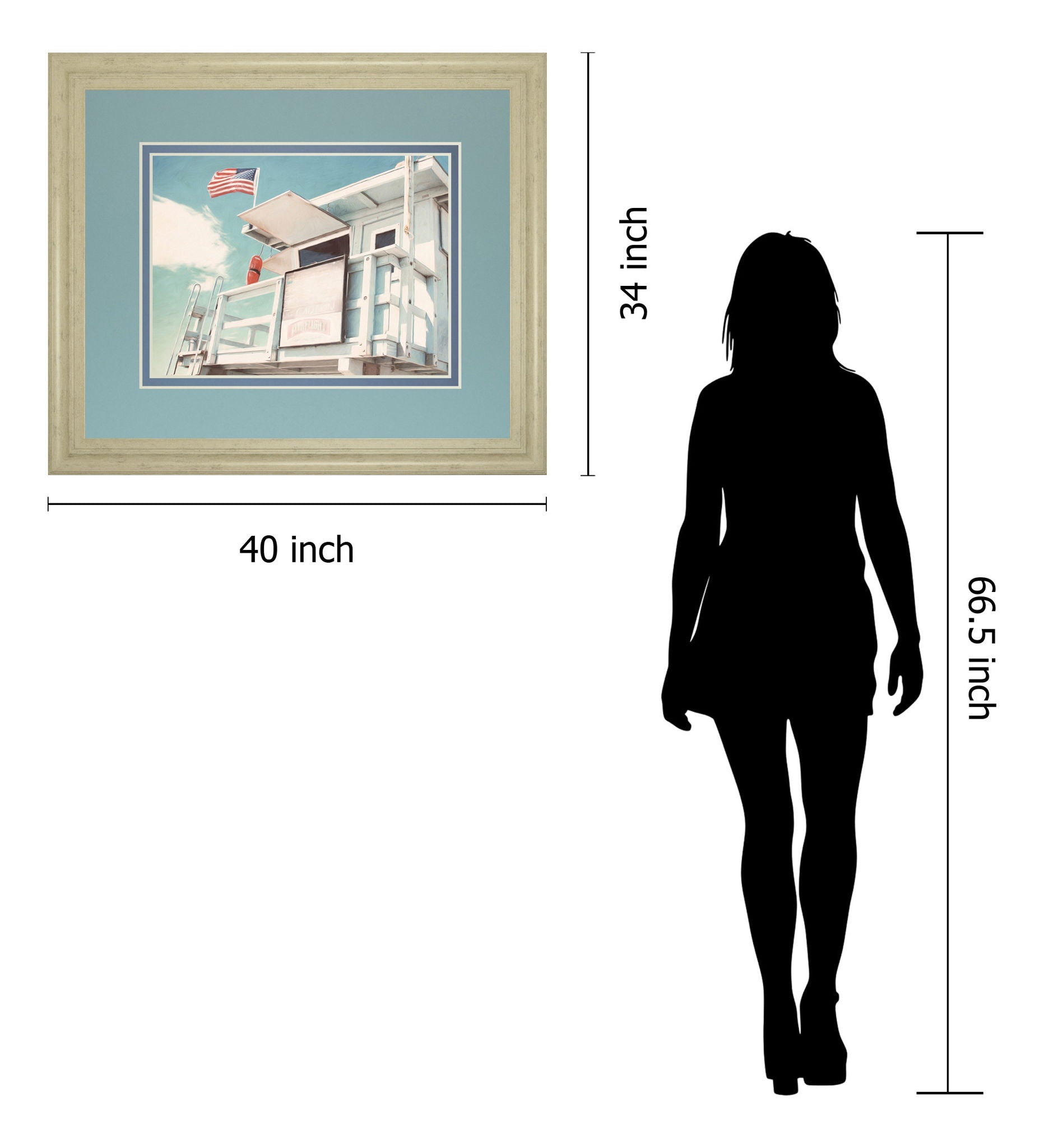 Step into the peaceful world of coastal living with this charming depiction of a watchtower standing tall against a soft blue sky. The artwork captures the essence of tranquil beach days, with an American flag fluttering gently in the breeze, evoking feelings of calm and nostalgia. Surrounded by an elegant ivory frame and layered with blue and white mats, this mixed media piece adds depth and sophistication to any space. Perfect for living rooms, bedrooms, or beach houses, it brings a touch of seaside serenity and timeless architectural beauty to your home decor.