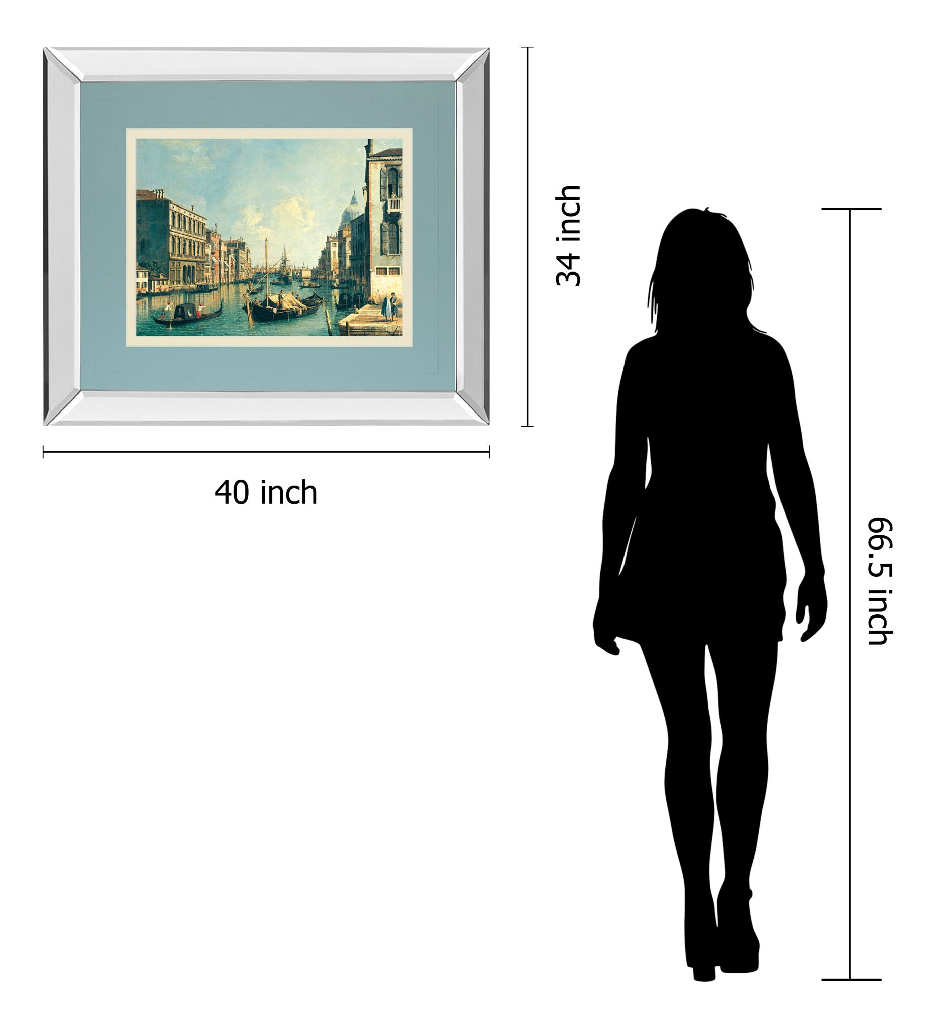 Step into the serene beauty of Venice with this captivating depiction of the Grand Canal and Rialto Bridge. This framed wall art showcases the historic charm of Venice’s waterways, where gondolas glide beneath a sky painted with soft clouds. The transitional style is enhanced by a sleek mirrored frame and double matting in soothing blue and cream tones, creating a refined gallery-quality presentation. Printed on premium paper and protected by real glass, this piece brings vibrant color and intricate architectural details to your living space or office. Ready to hang and professionally assembled, it invites you to experience the timeless elegance and cultural richness of one of the world’s most iconic cities.