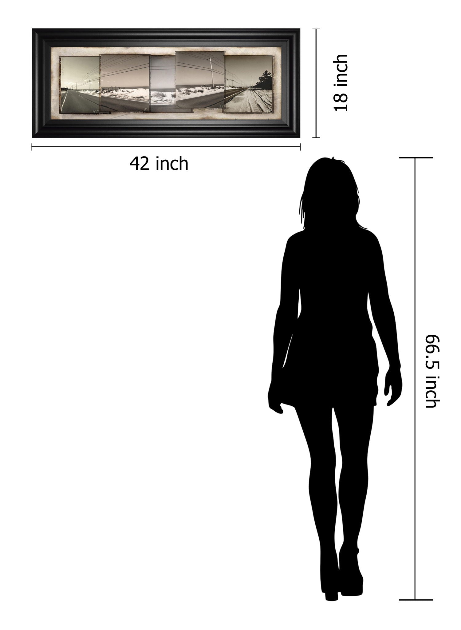 This captivating piece invites you on a coastal journey through a unique photographic montage that blends serene roadways and sandy dunes under a muted sky. Encased in a sophisticated midnight aura frame, the artwork exudes elegance and depth, enhancing the tranquil palette of black, beige, gray, and white. Crafted with premium real glass and expert care, it’s ready to hang and perfect for adding a peaceful, wanderlust-inspired touch to living rooms, offices, or bedrooms, making every glance a moment of calm and reflection.