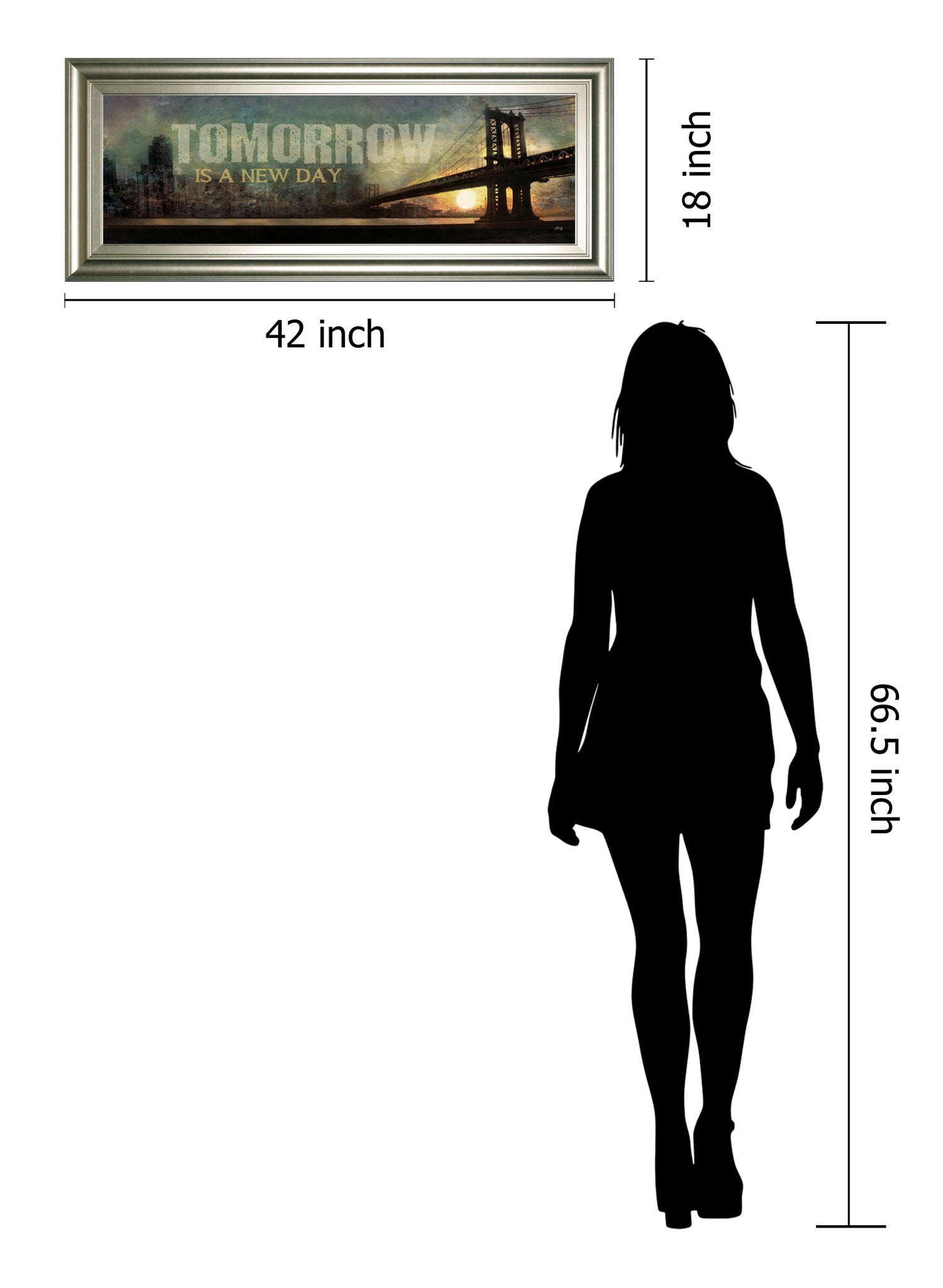 Step into a world of hope and fresh beginnings with this captivating framed wall art, featuring a silhouetted bridge against a glowing sunset. The inspirational message, "Tomorrow is a New Day," is beautifully integrated into the scene, inviting you to embrace renewal each morning. With its elegant silver frame and rich, vibrant colors, this piece adds a sophisticated touch to any living room, office, or bedroom, making it a timeless reminder that every day holds new possibilities.