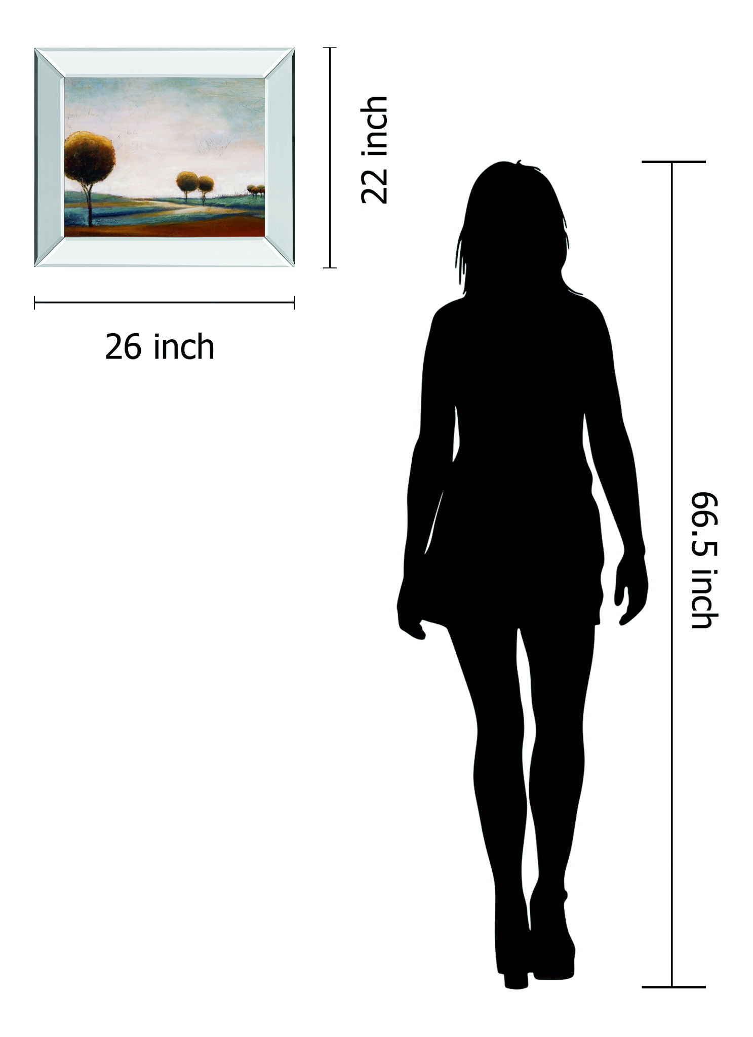 Step into a serene landscape where soft hills roll gently beneath a pastel sky, inviting a moment of calm and reflection. This artwork captures the peaceful essence of nature with its soothing palette of blues, greens, and warm earth tones, enhanced by a sleek mirrored frame that adds a modern touch and subtle depth. Ideal for living rooms, offices, or bedrooms, it effortlessly blends tranquility with sophisticated style, offering a refined focal point that elevates any space. Crafted with premium materials and protected by crystal-clear glass, this ready-to-hang piece promises lasting beauty and a quiet escape from the everyday.