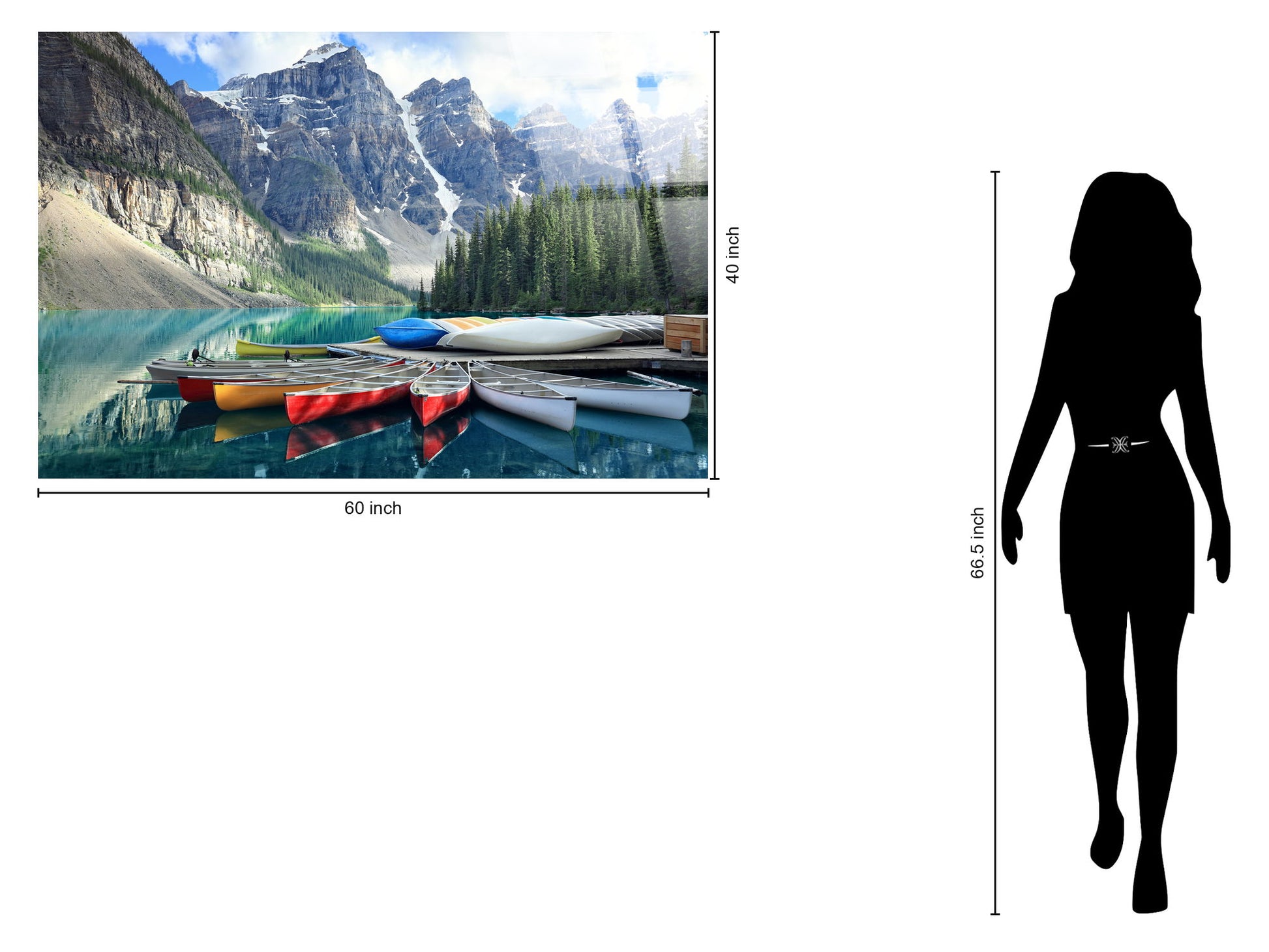 Experience the serene beauty of nature with this stunning photograph capturing a tranquil mountain lake. The vibrant canoes and majestic peaks create a harmonious balance, perfect for bringing a sense of peace and adventure to any space. Ideal for living rooms or offices, this piece invites you to escape into the calm of the wilderness.