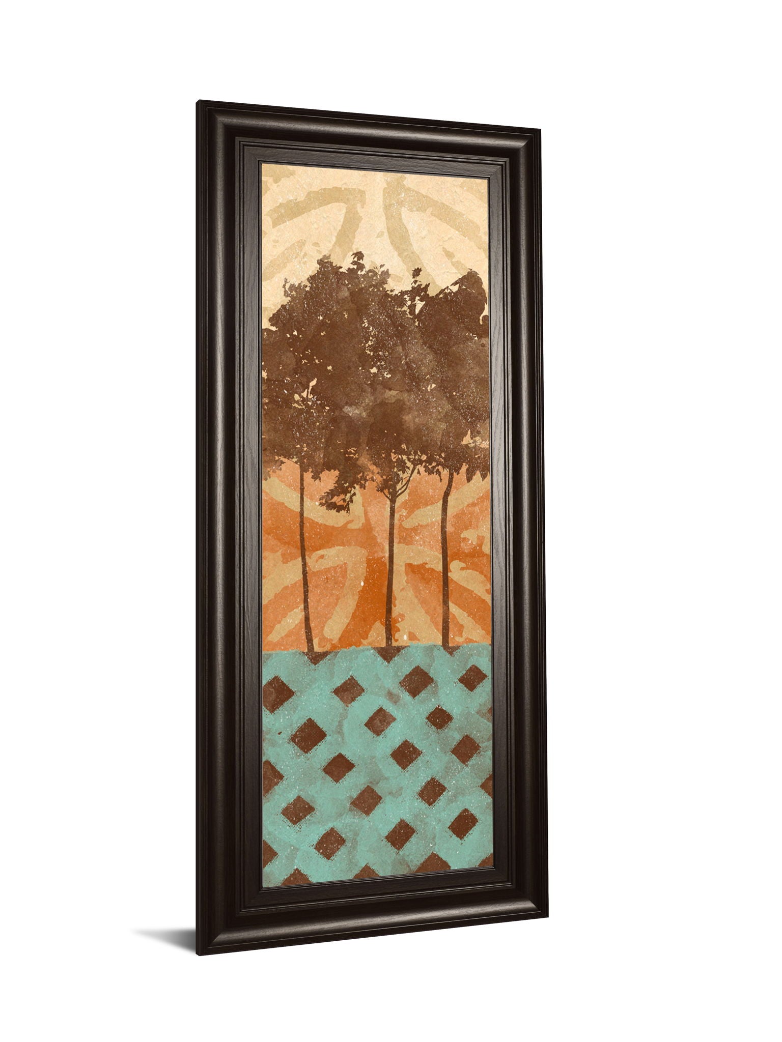 Step into a world where earthy tones and abstract shapes blend seamlessly to create a captivating visual story. This piece showcases rich browns and warm oranges contrasted with cool teal, evoking a sense of balance and tranquility. The textured layers and subtle patterns invite you to explore the depth of the composition, while the sleek black frame with real glass enhances every detail and color. Perfect for adding a sophisticated touch to your living room or office, this artwork is ready to hang and crafted with care to elevate your space with contemporary elegance.