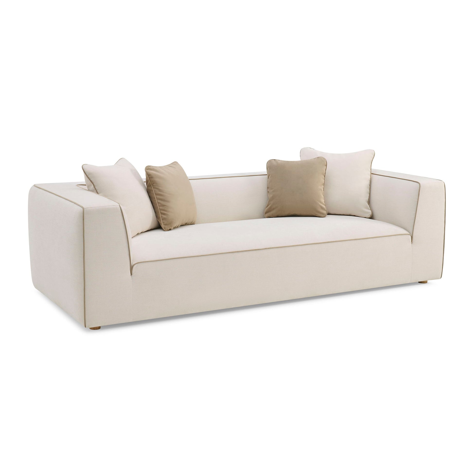 Bold and stylish, the Tristine is a sleek yet formidable addition to your living room. Deep and highly cushioned, this European silhouette is modified for US comfort and comes with heavy accent pillows of ethical synthetic down fibers. Lined with contrasted piping and accent pillows, the mixture of materials here is one of the hottest trends. Amazing in the middle of the room or against a corner, this 360 degree beauty is a showstopped from any angle. Every face is rounded and padded and covered in high density foam.